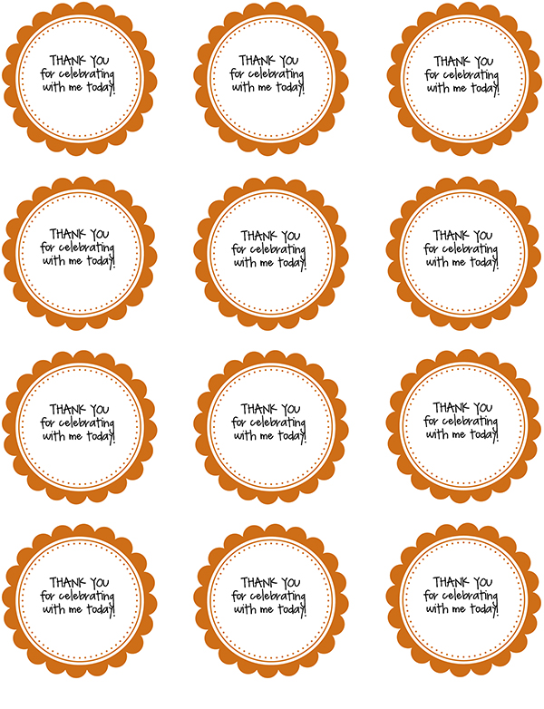You can take the thank you tag, cut them apart into squares, punch a hole in the corner and tie them on to a party favor of any sort. I like to tie them on to large candy bars of the $1 movie box candy.