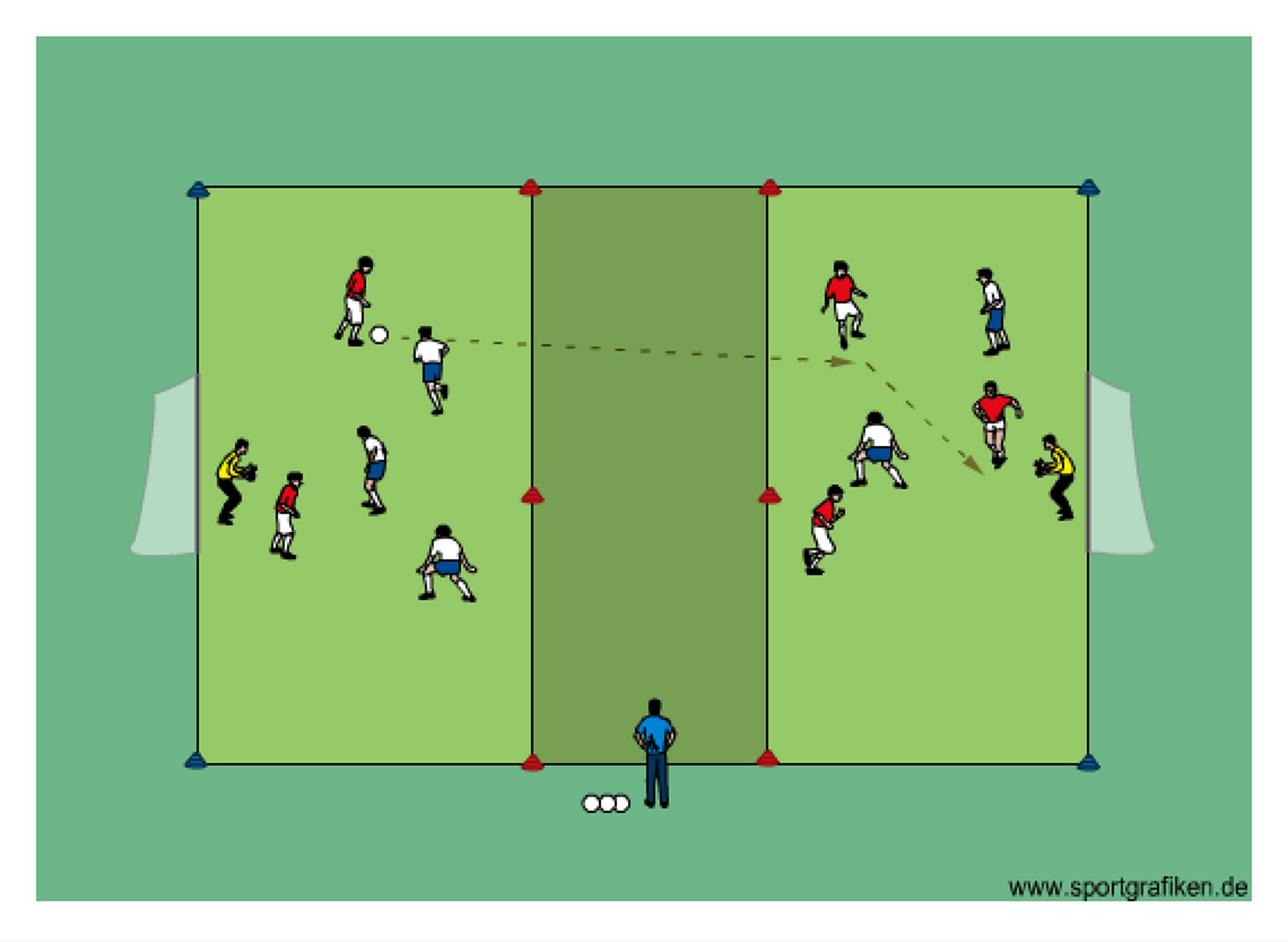 - teams score by passing the ball to a teammate in the attacking zone who then attempts to score by utilizing his