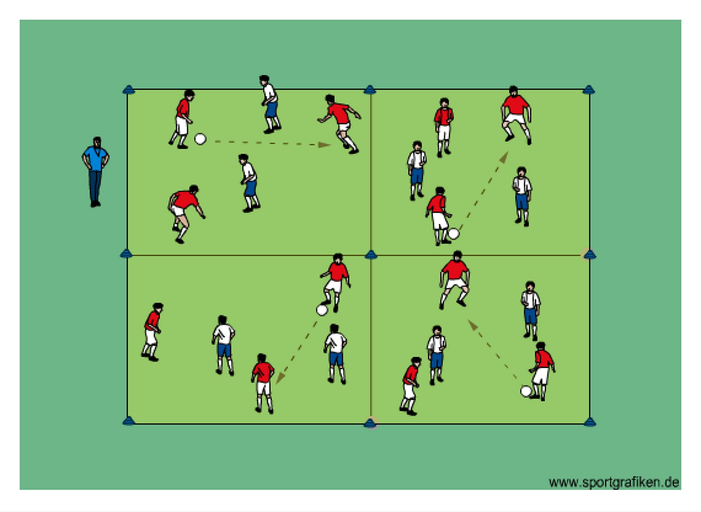 - defenders become attackers if they win the ball and then connect one pass 7 times