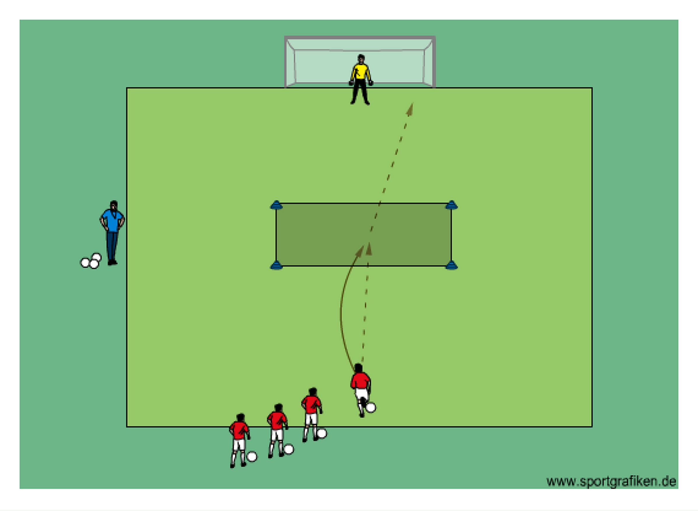- players make a self-pass and follow it into the zone and then finish on goal on their first