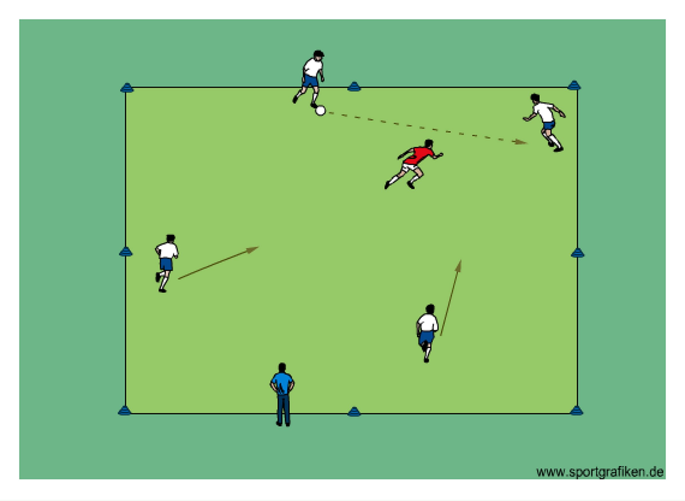 - if defender allows a certain number of (one-touch) passes or nutmeg he is to stay in the middle one extra round
