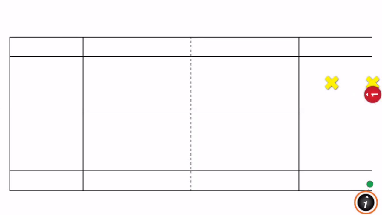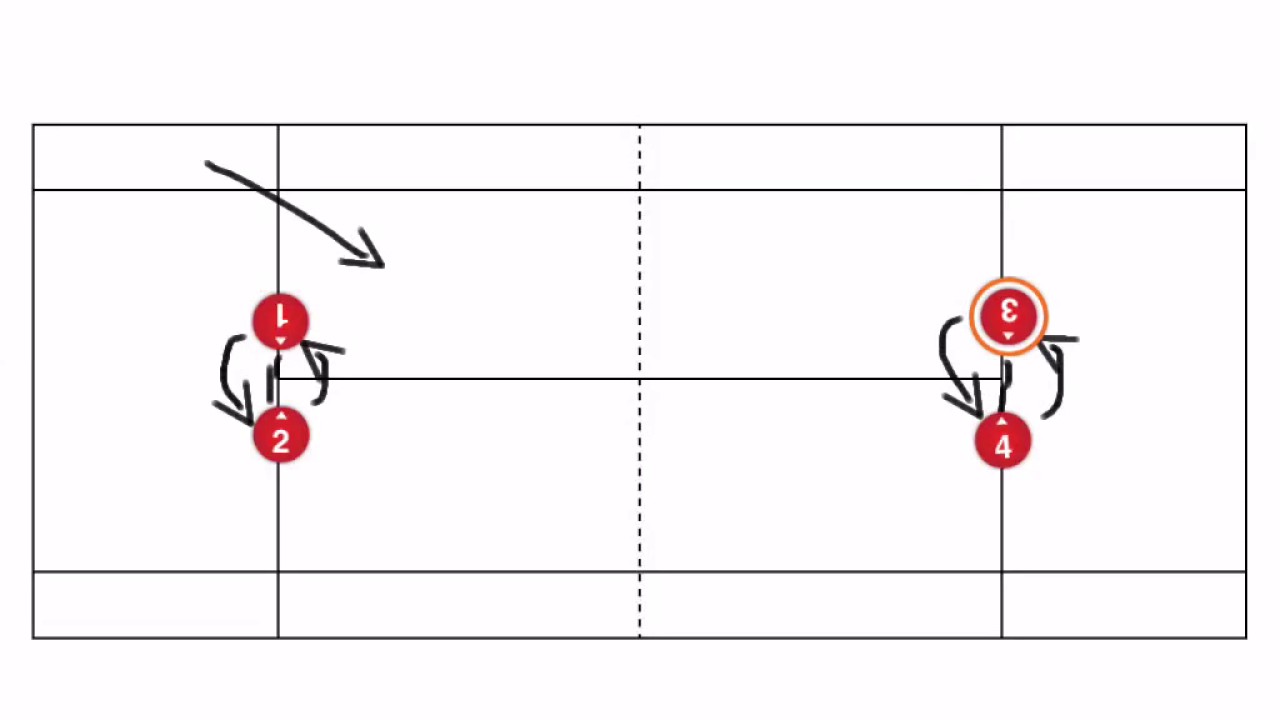 - 4 players: 2 at the baseline, 2 at the net
