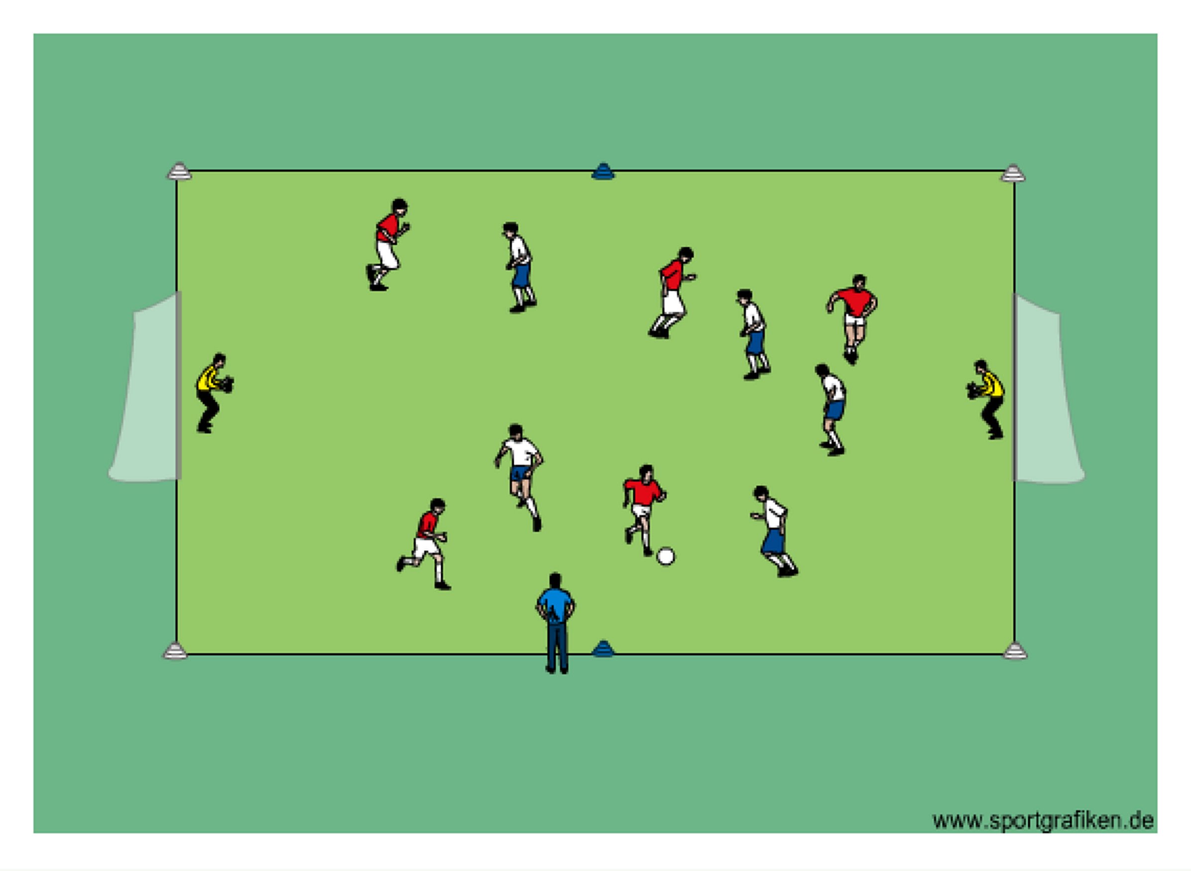 - multiple 1v1s (players can only defend a designated player and cannot tackle another attacker)