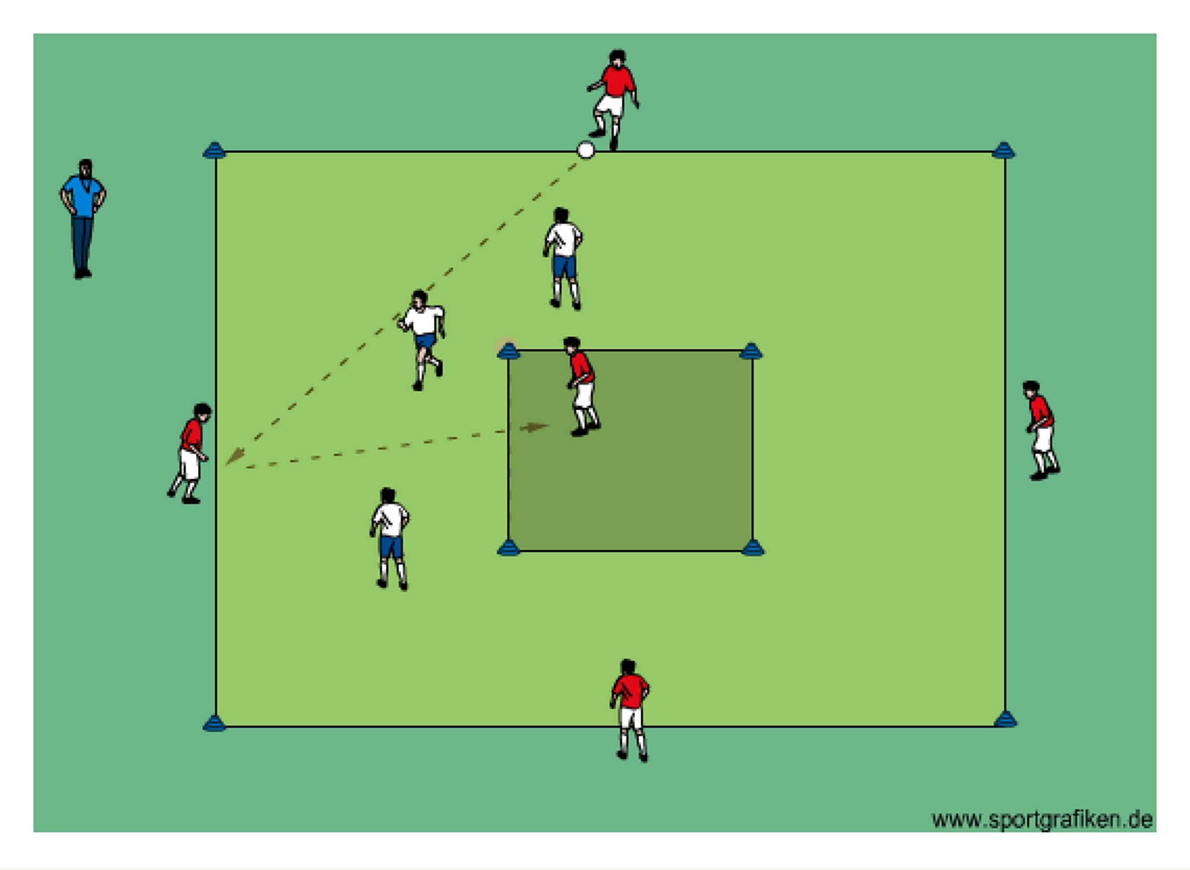 - switch roles after 4-5 minutes or if defenders intercept 5 passes