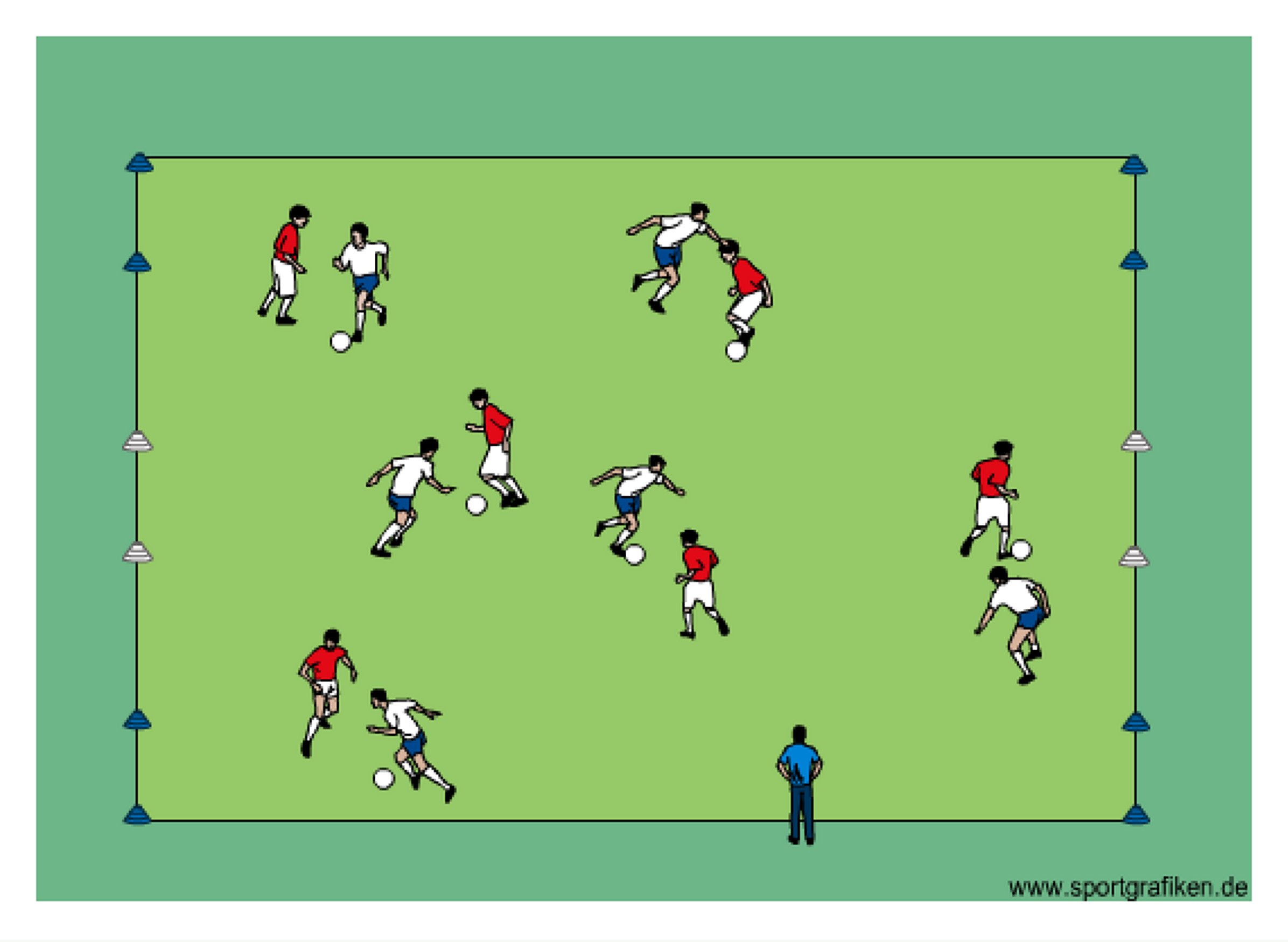 - 6 cone goals (2-4yds)