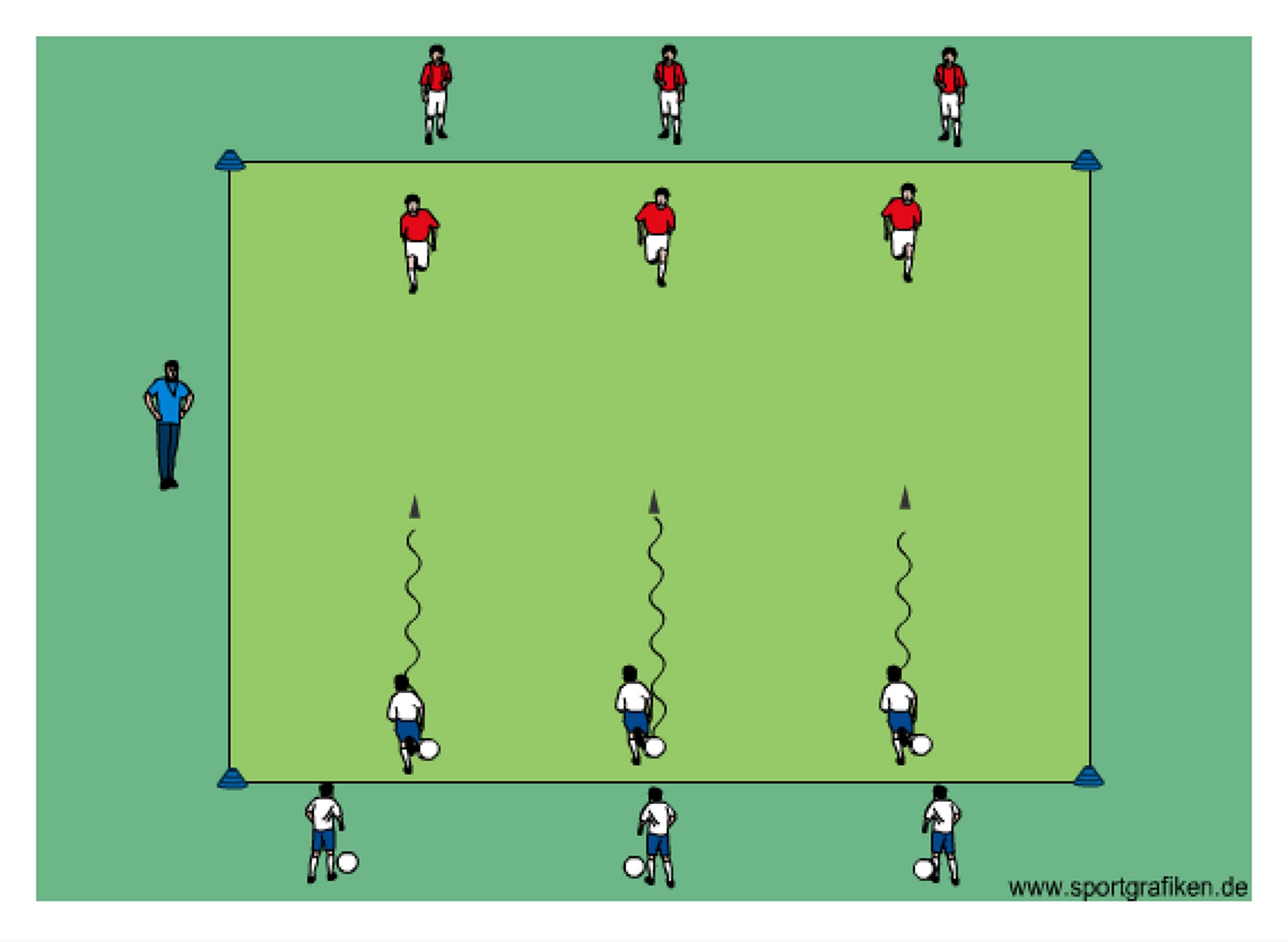 - players from one team start with the ball and play 1v1 with a player from opposing team