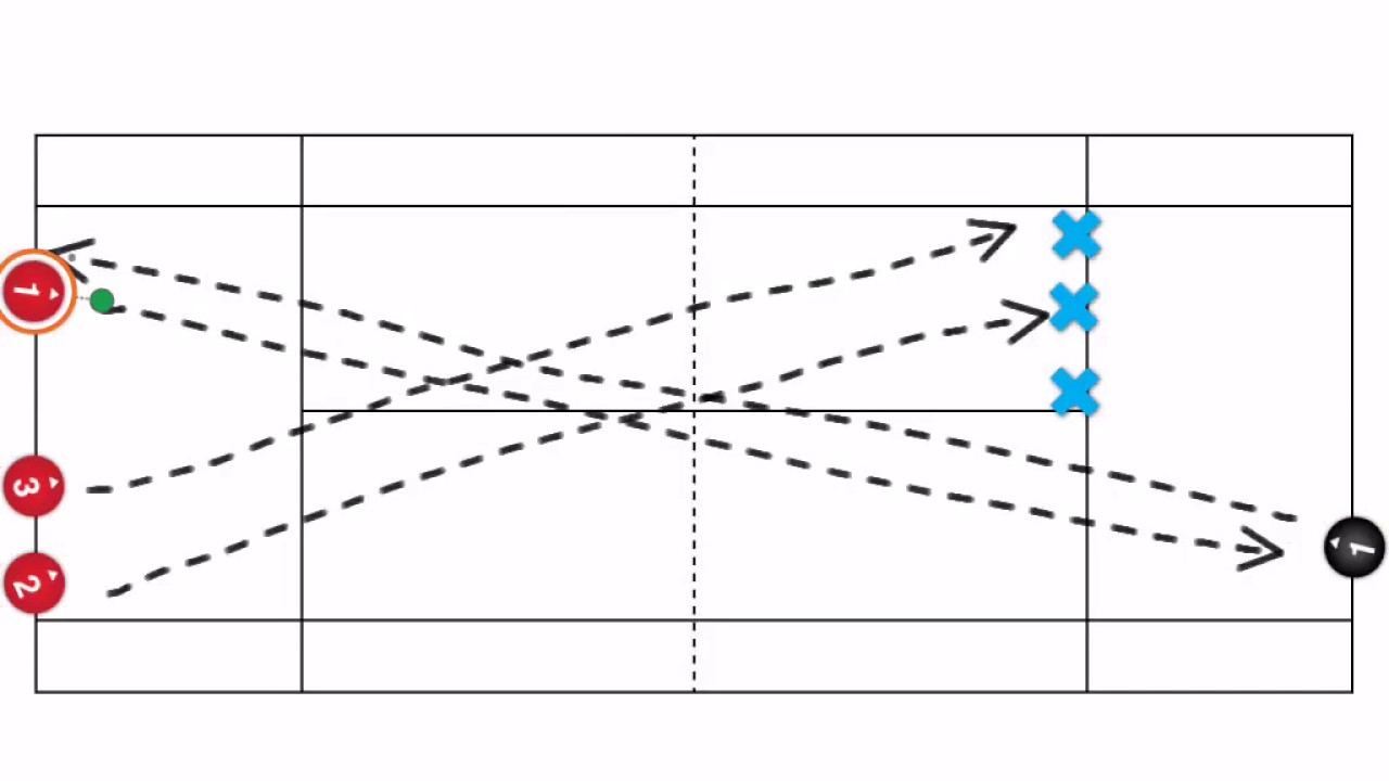 - The coach feeds three balls in succession:Feed 1: a deep baseline ball