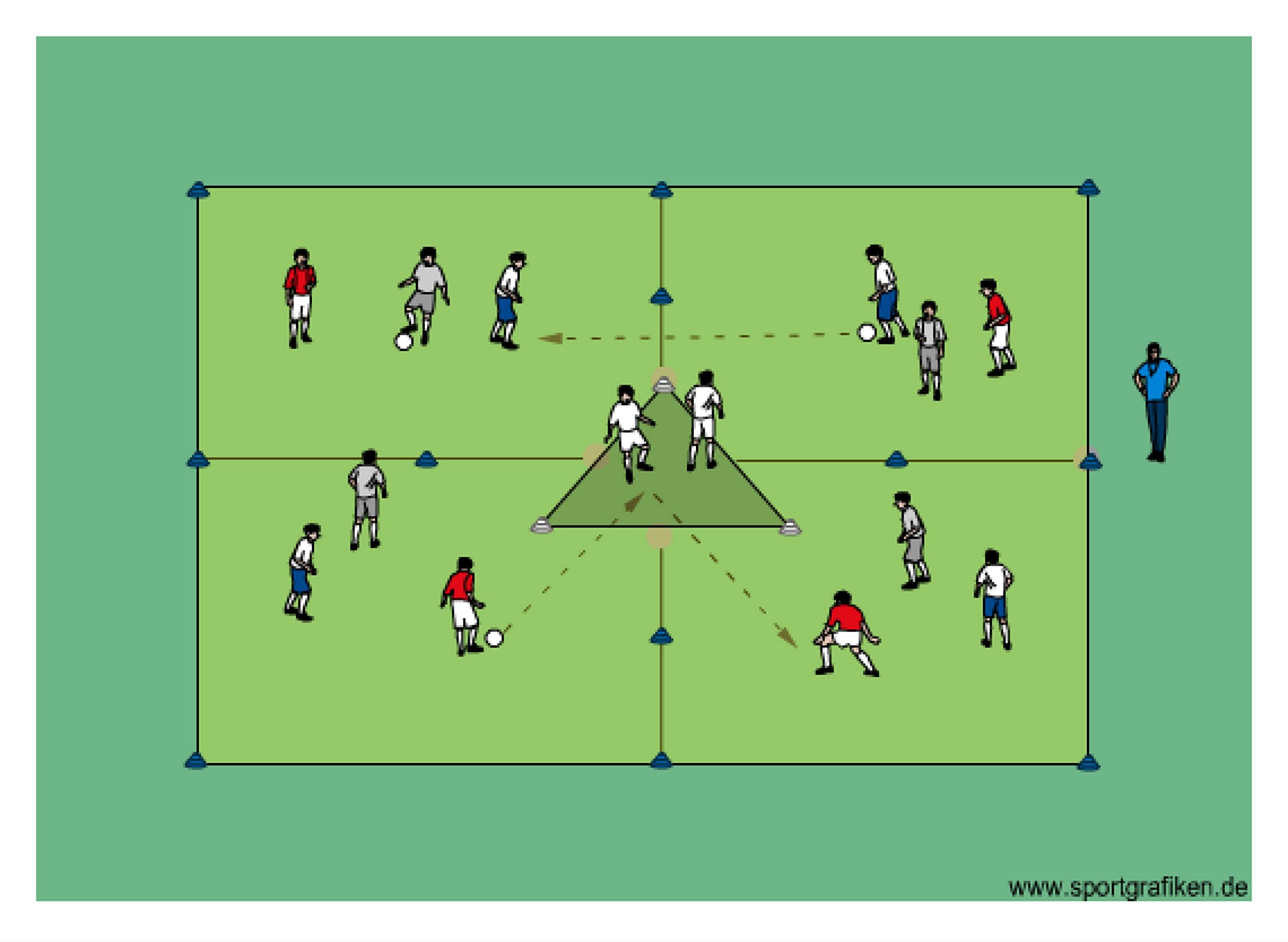 - each team passes a ball two-touch around the grid making sure thattwo balls don't end up in the same grid