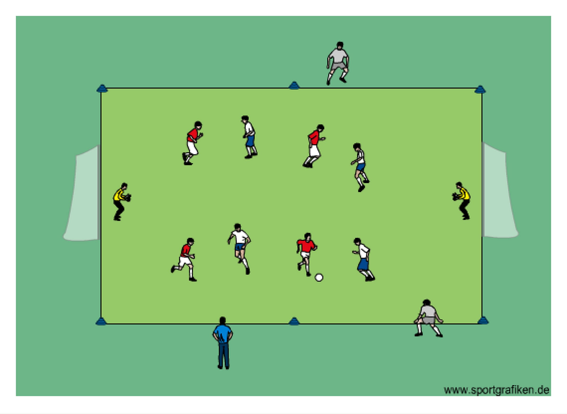 - each team defends and attacks one goal