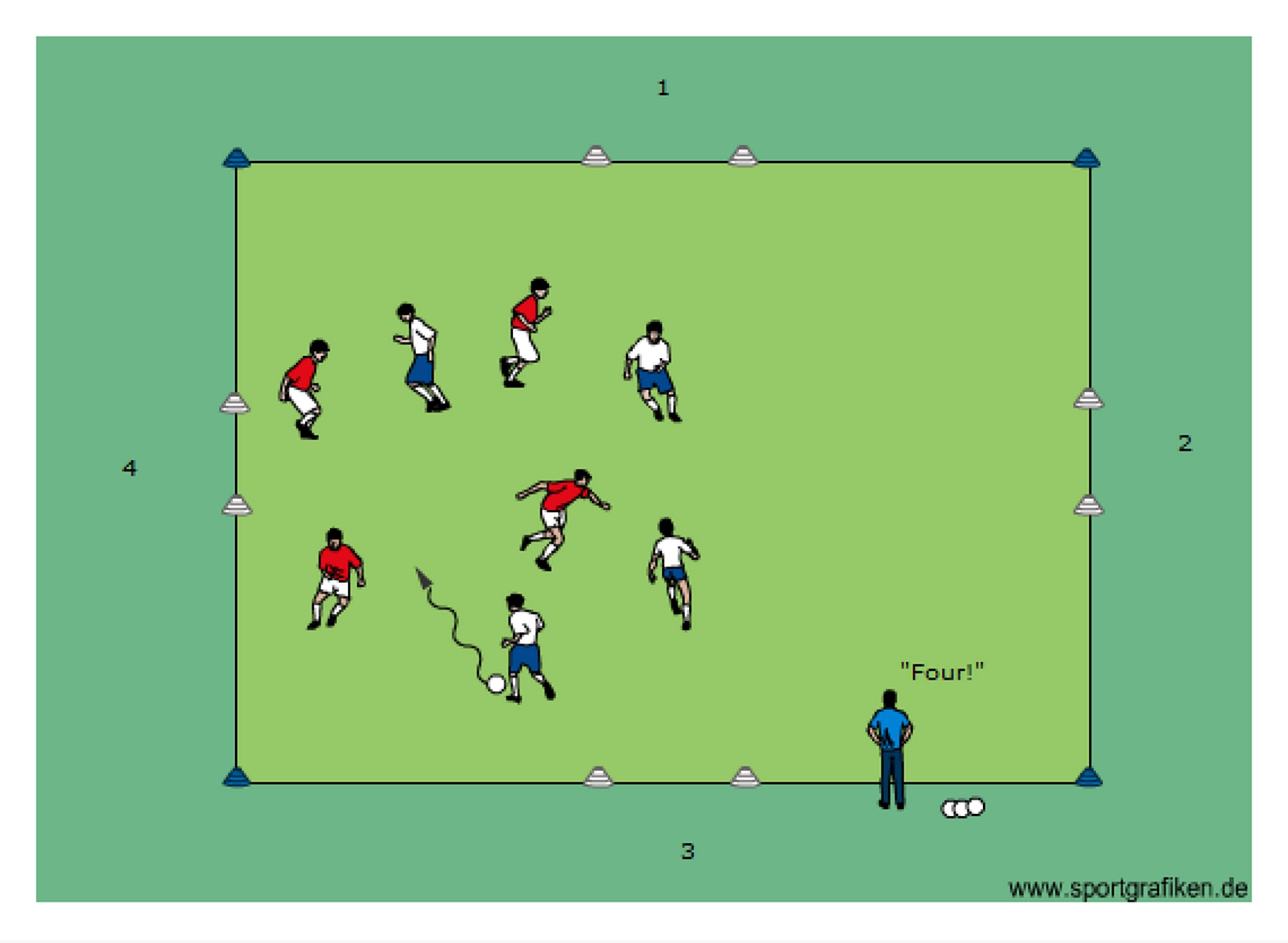 - cone goals (3-5yds)