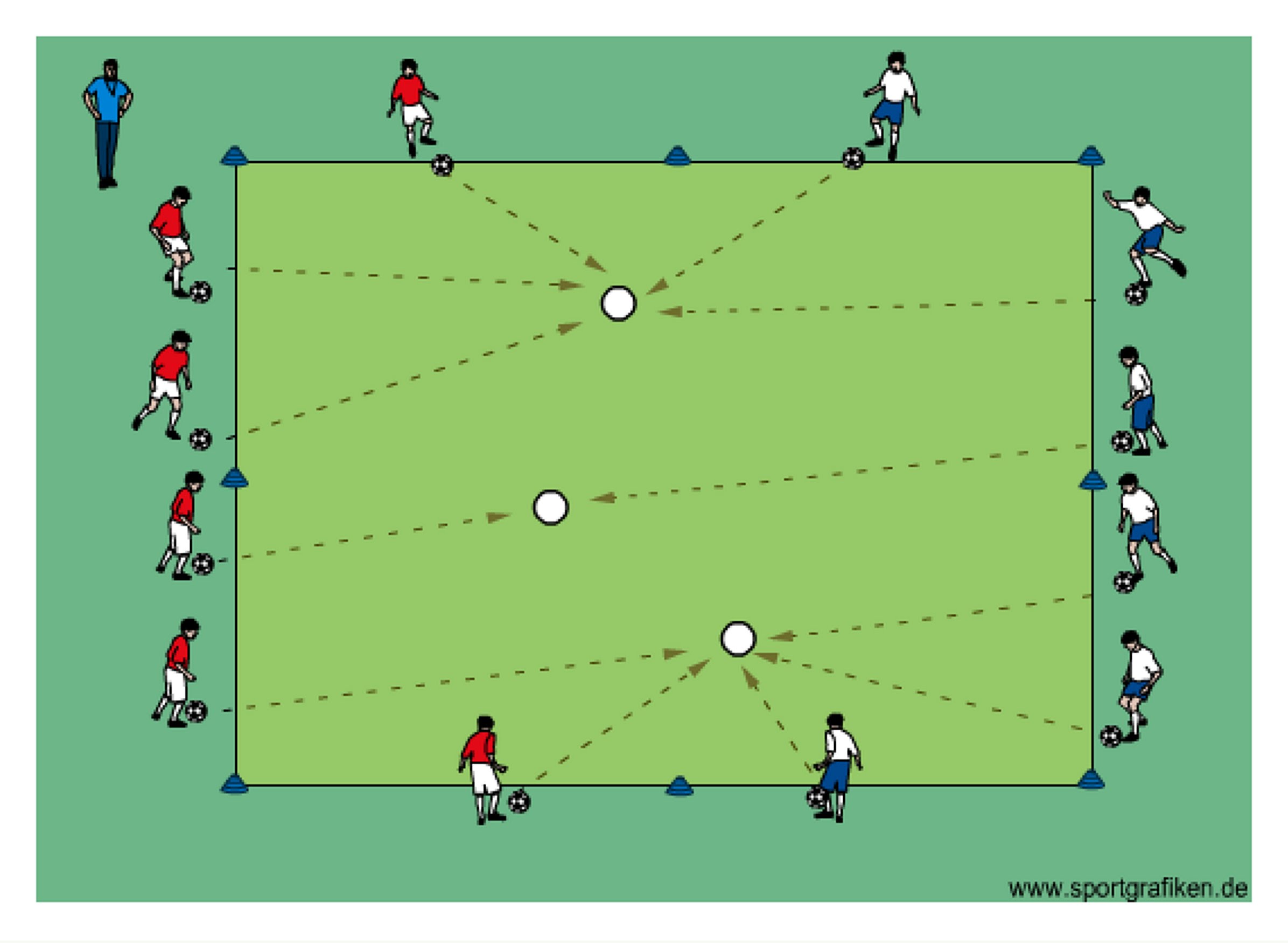 - specify how players must pass (left or right foot, inside or outside foot etc.)