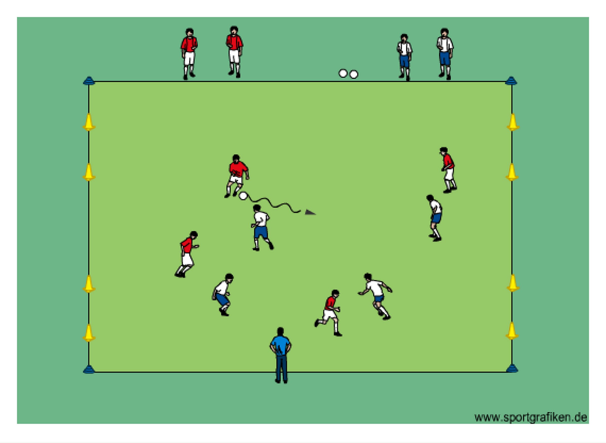 • each team consists of 2 pairs and play 4v4 (2 pairs waiting on the side line)