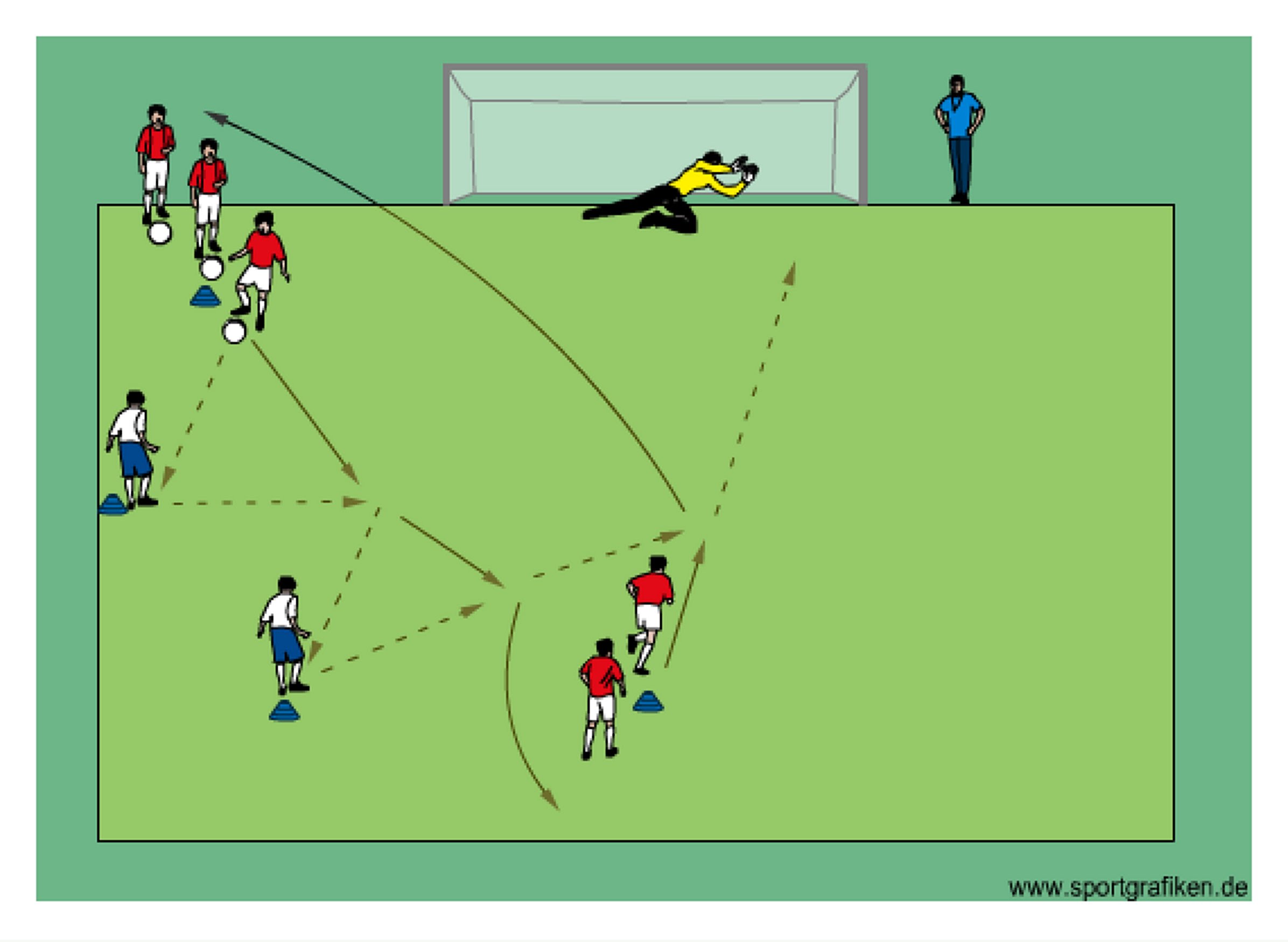 - players pass to players at cones and then make a lead pass to the shooter as shown