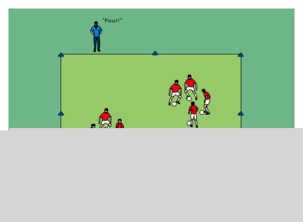 - once player 2 receives the ball player 3 starts from his cone to defend player 2
