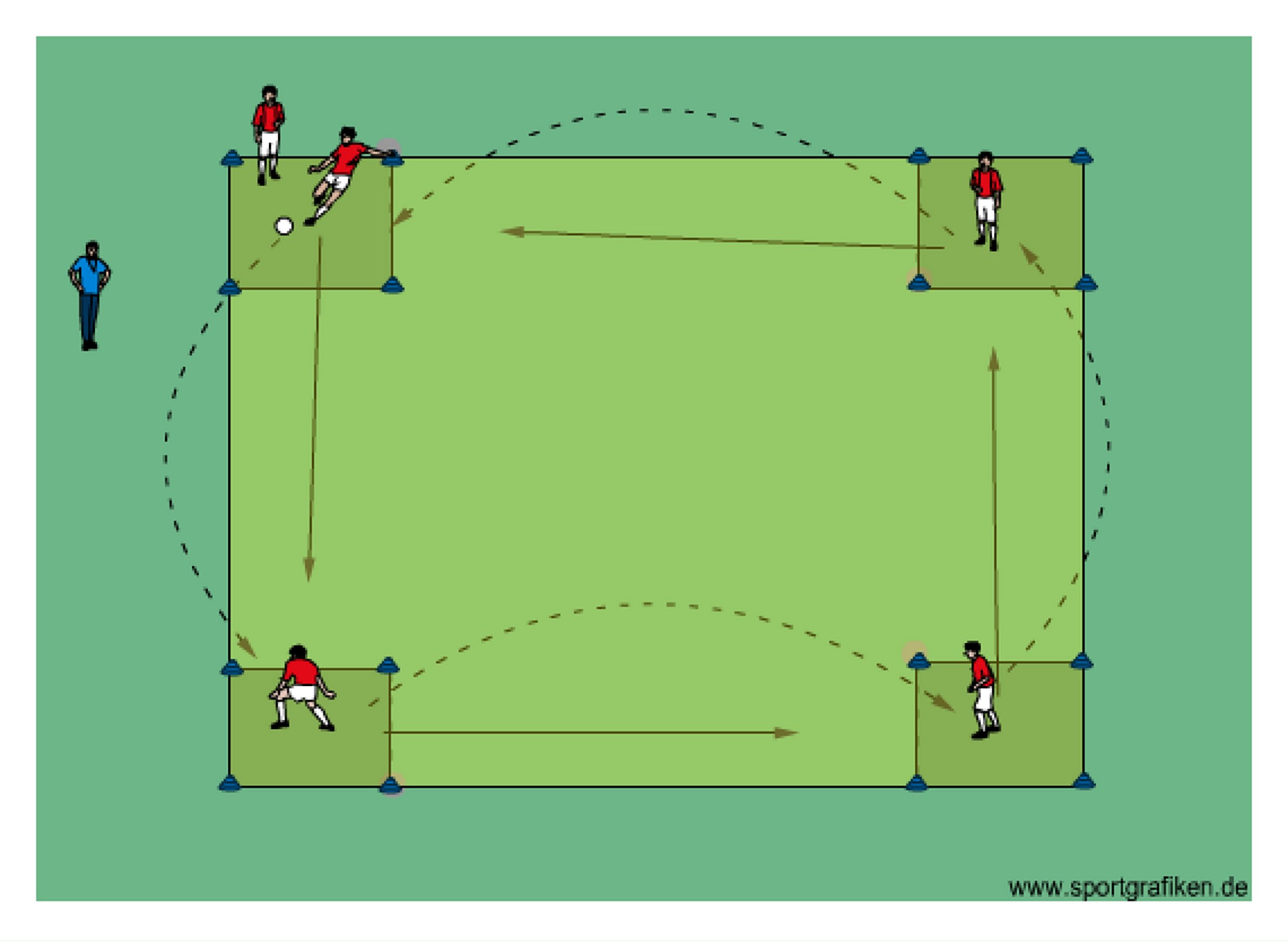- players make lofted passes and follow into the next target area