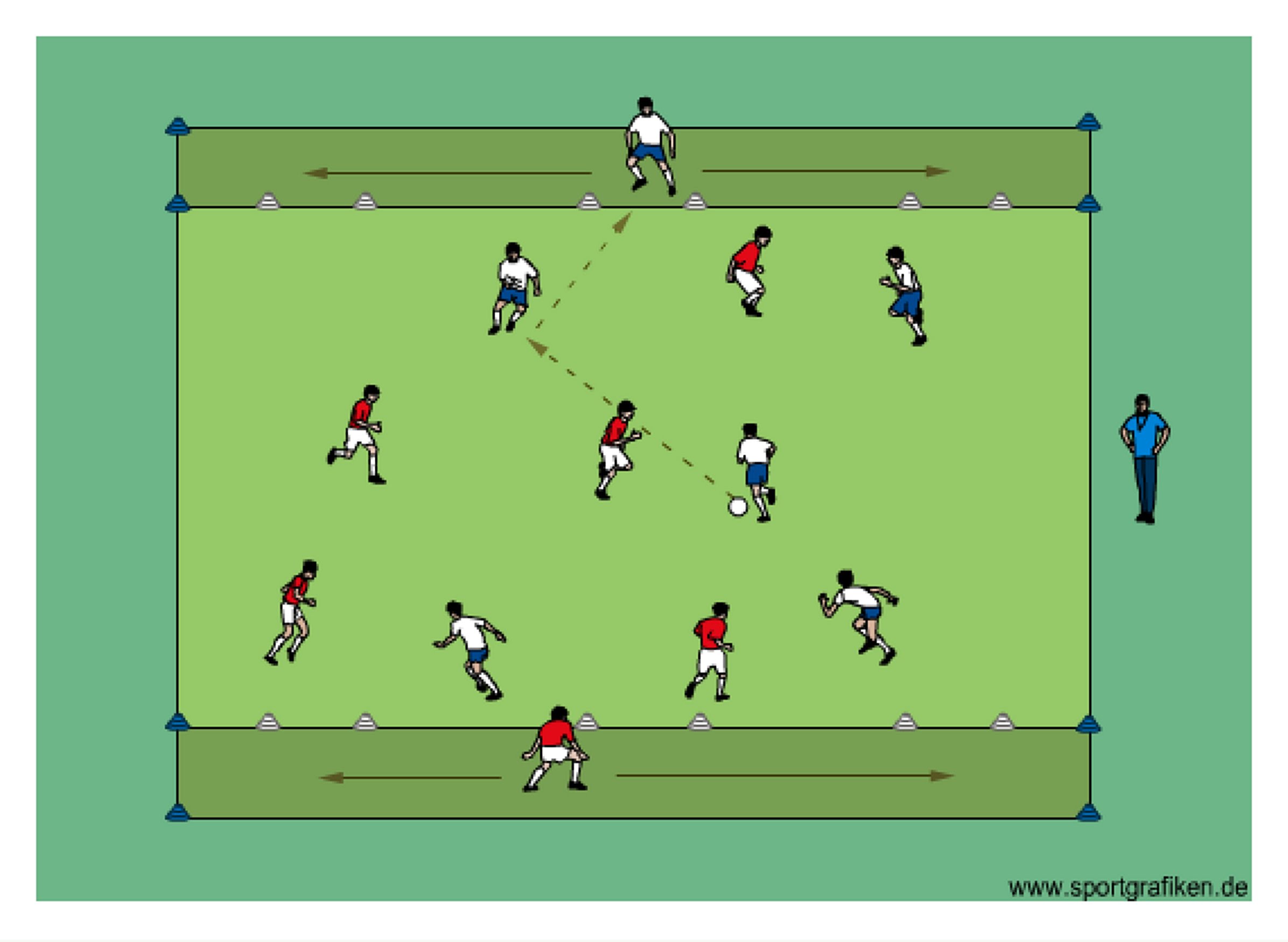 - 4 cone goals (4-5yds)