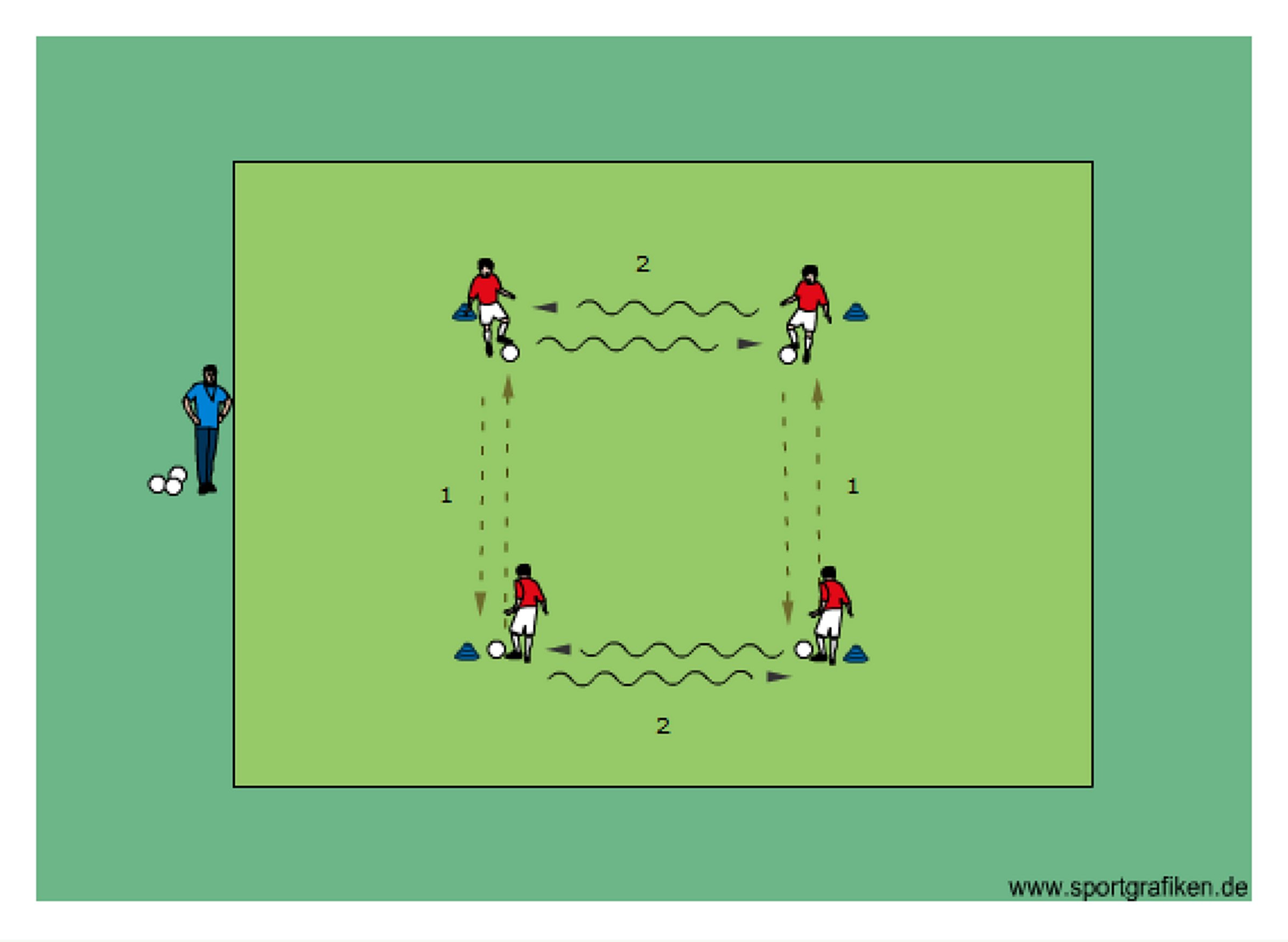 - all four players pass and dribble simultaneously in the sequence as shown