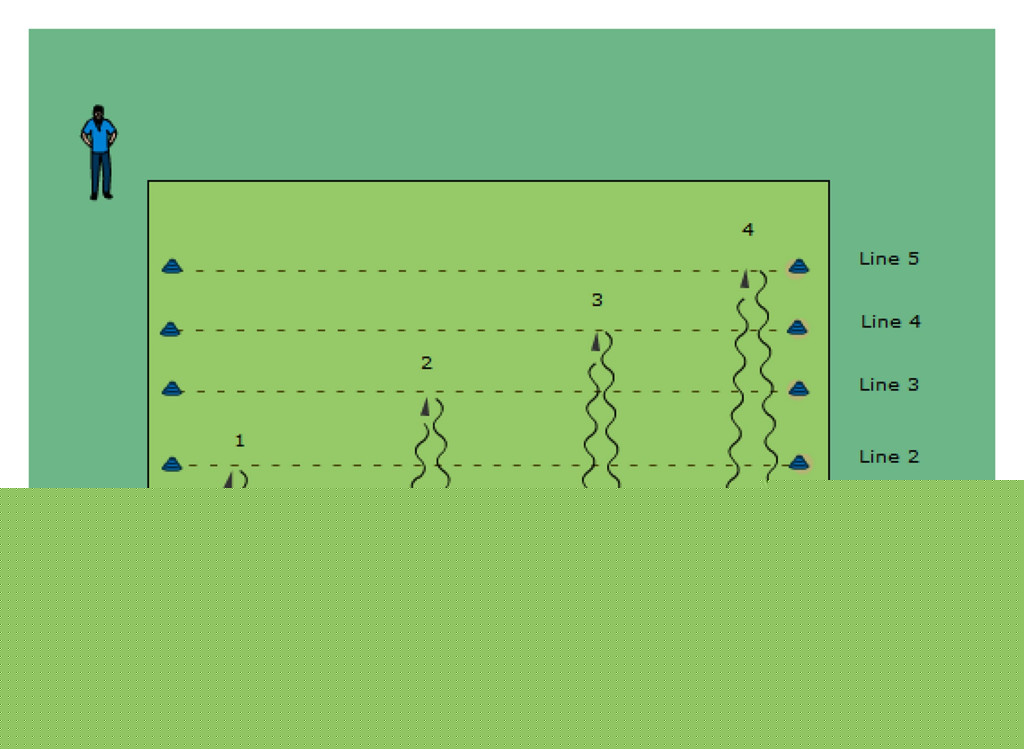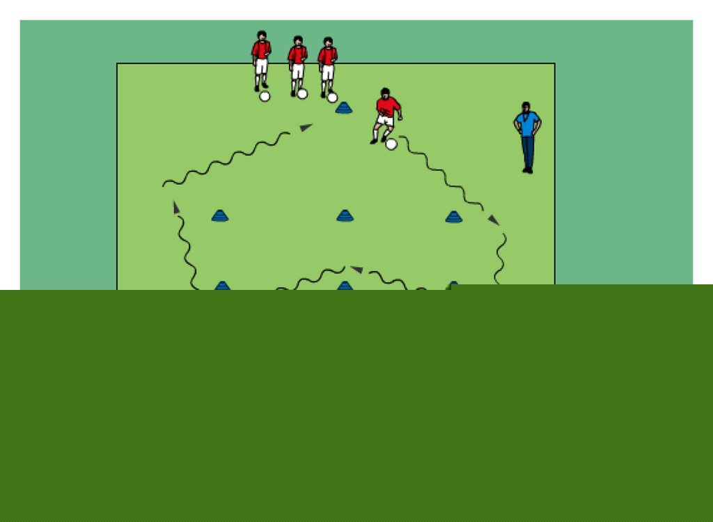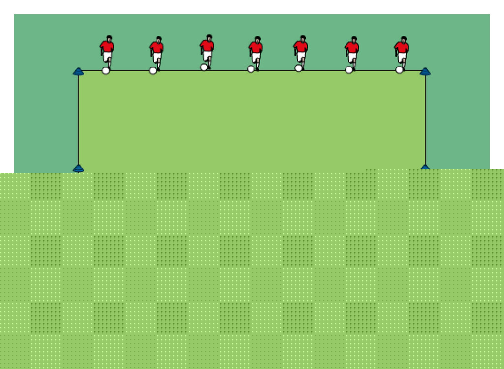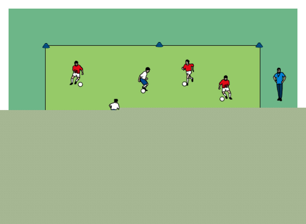 - red players stand right in front of the cones and lay off the ball to either the outside or the inside of the square
