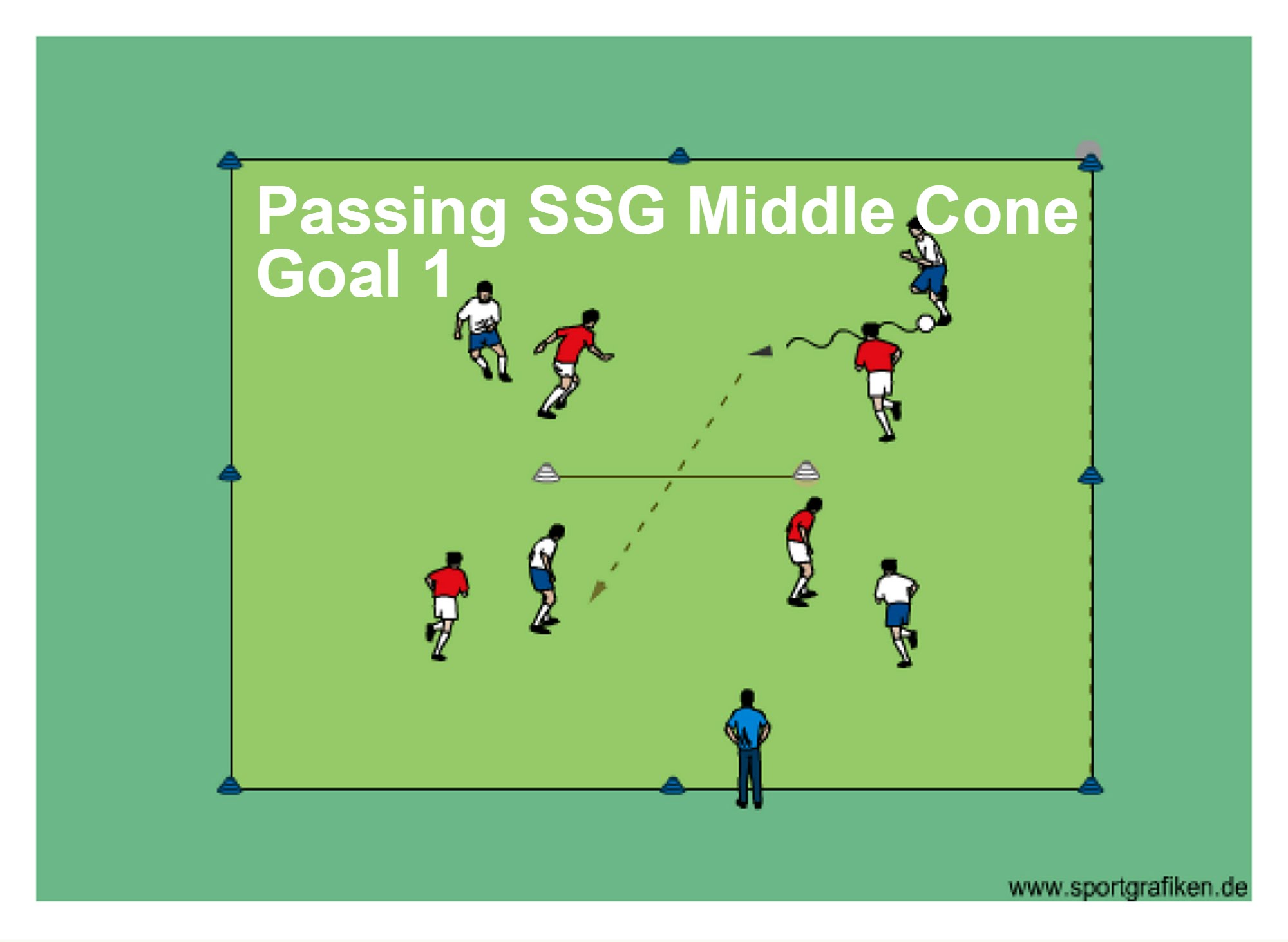 Soccer Passing SSG Middle Cone Goal Training Drill