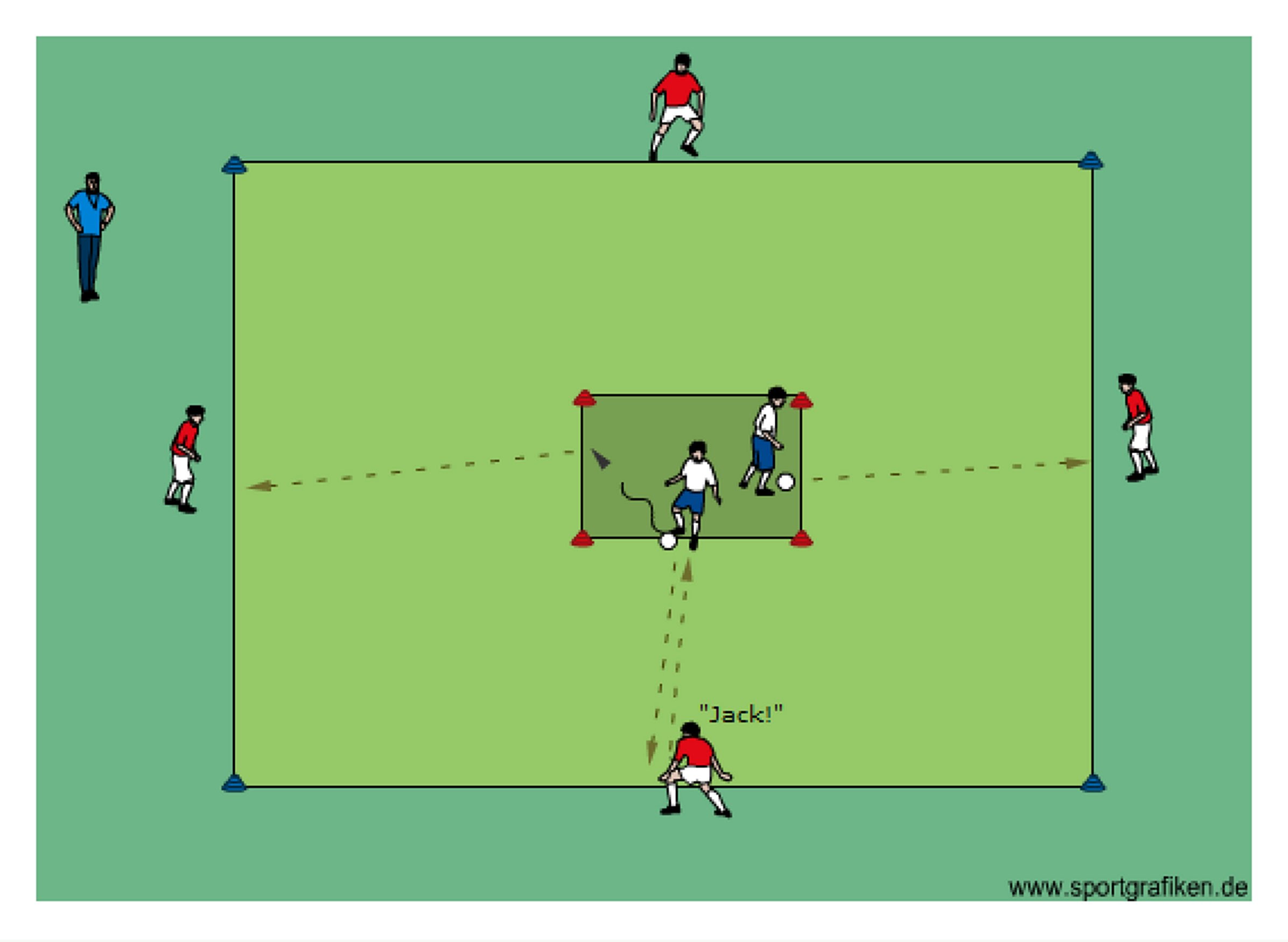 - outside player who receives it plays the ball back one touch and calls out the name of another outside player