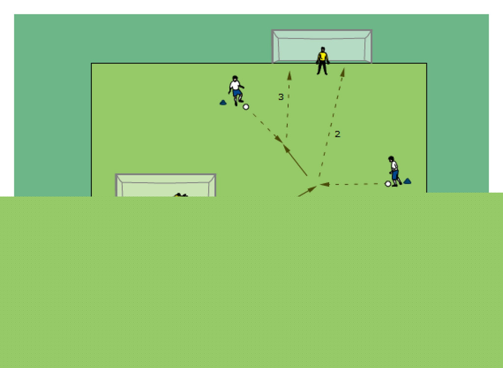 - on coach's command first player from each group dribbles around 3 cones and then stops the ball dead in front