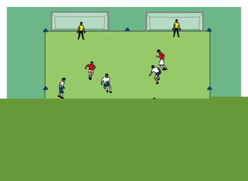 - multiple 1v1s (players can only defend a designated player and cannot tackle another attacker)