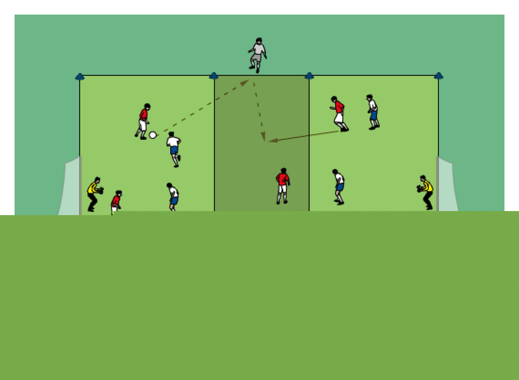 - players dribble through cone goal to take on defender in a 1v1 situation