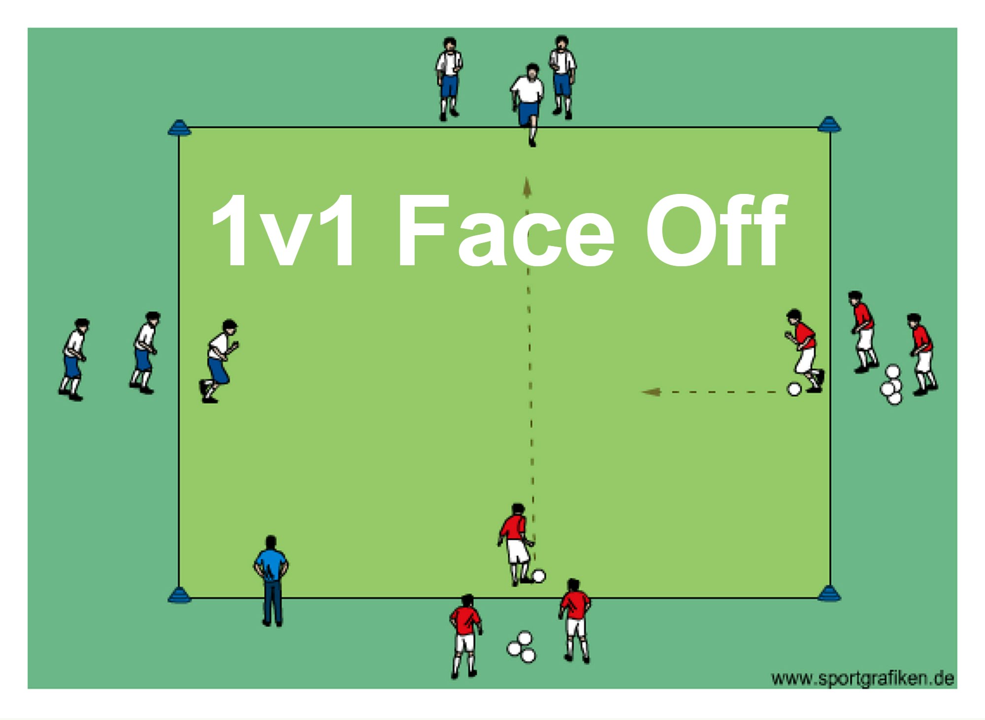 - winner stays on to defend the next player coming from the end line he tried to score on (ball is dribbled onto the field)