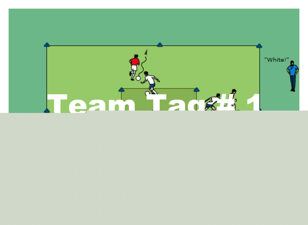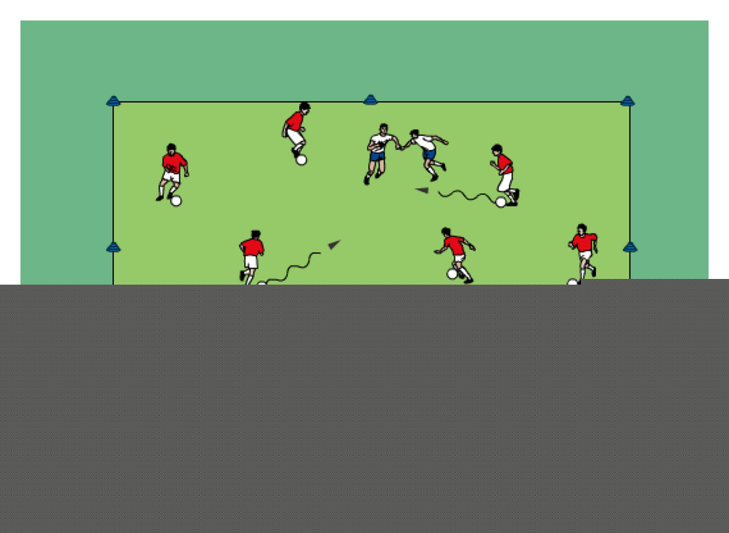 - first two players in line for the red team now dribble the ball towards the new defender and