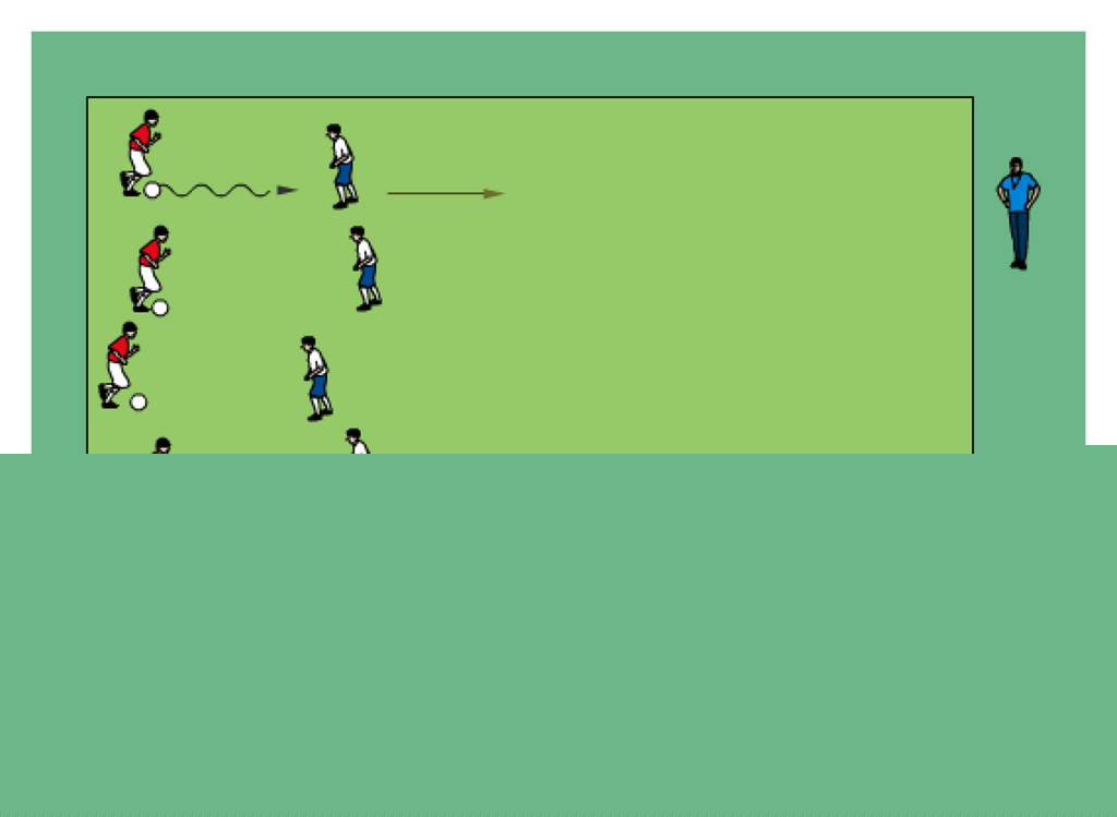 - on coach's command one player from each team attempts to dribble a ball from the middle of the grid back to his/her corner