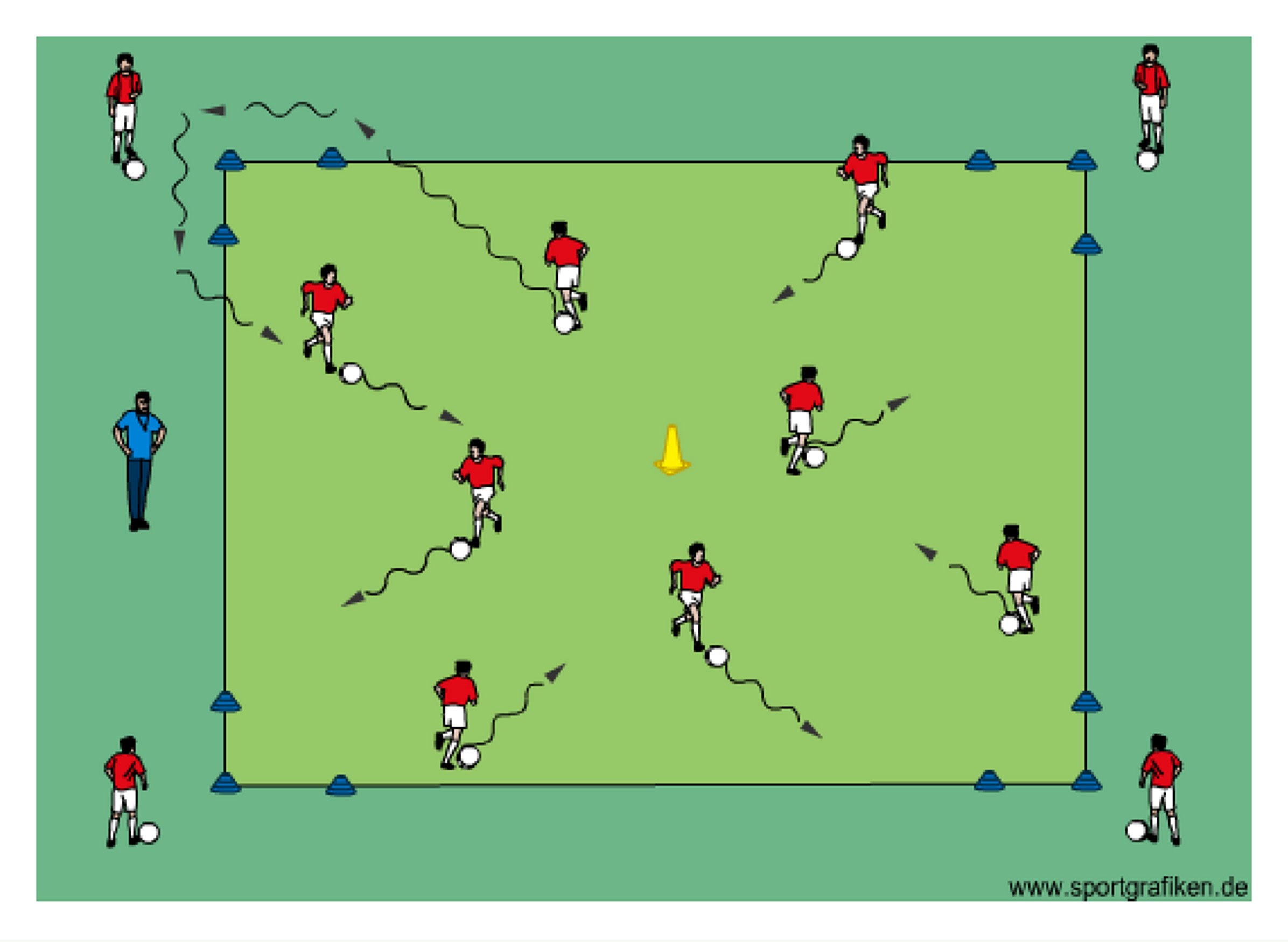 - specify how players must dribble (inside or outside of foot, sole, left or right foot only etc.)