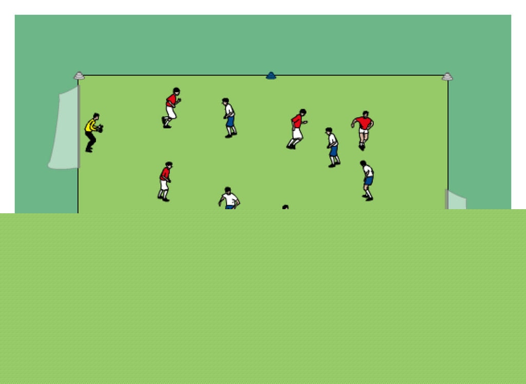 - one designated sweeper keeper in each end zone (attacker who dribbles into end zone goes 1v1 against sweeper keeper)