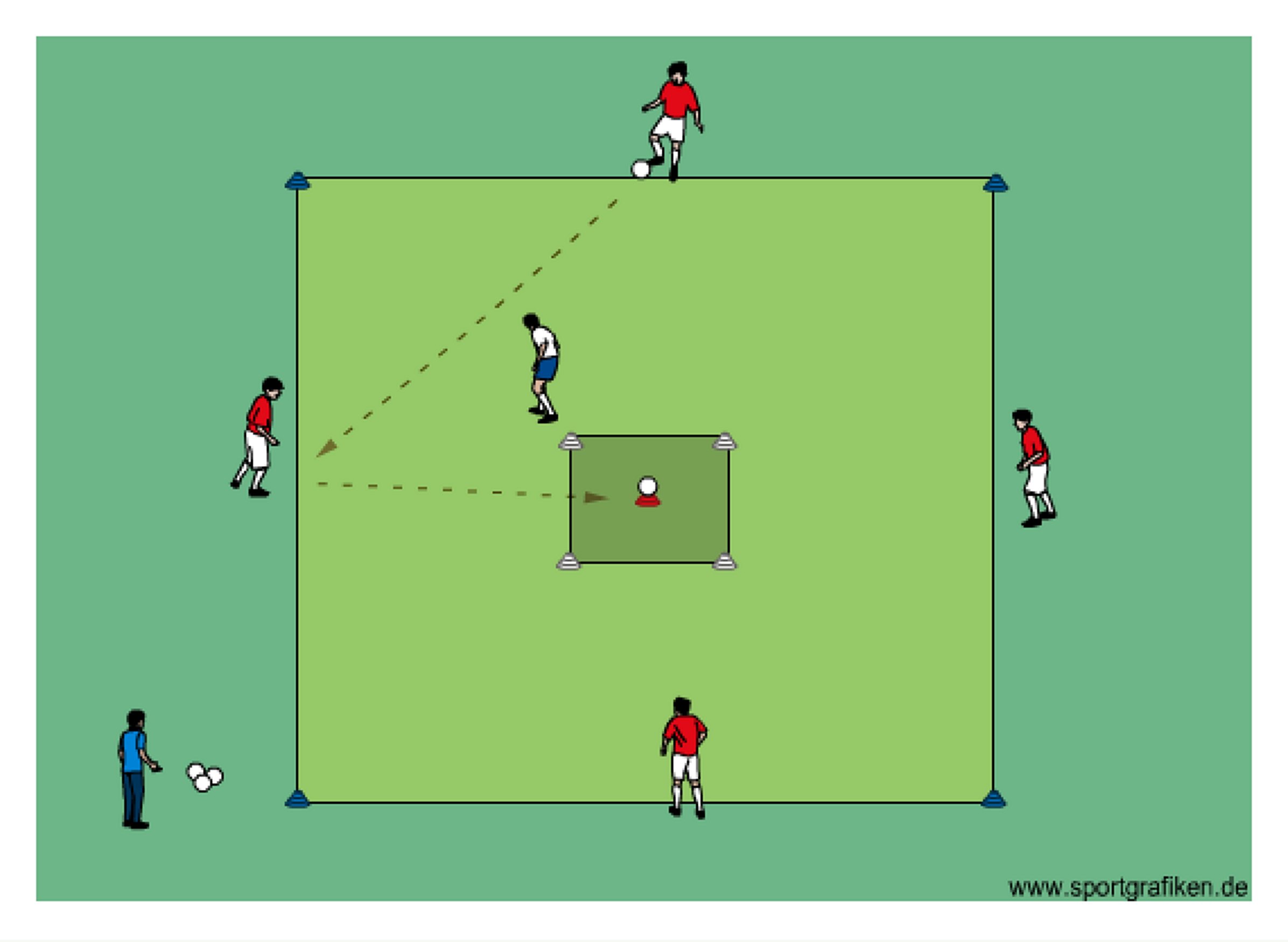 - outside players pass the ball around from outside the grid trying to find an opening to knock the