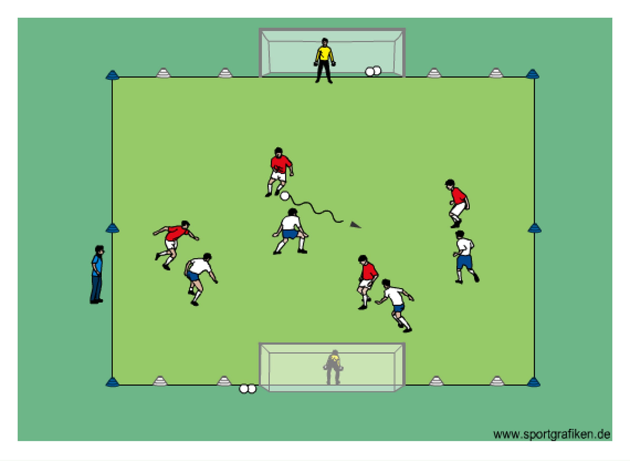 - goals on cone goals count 1 point + goals on goalkeeper count 2 points