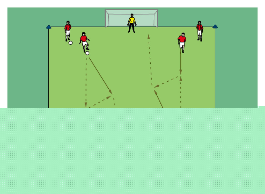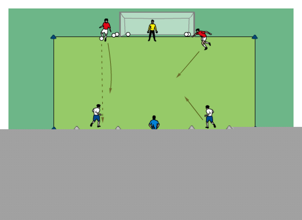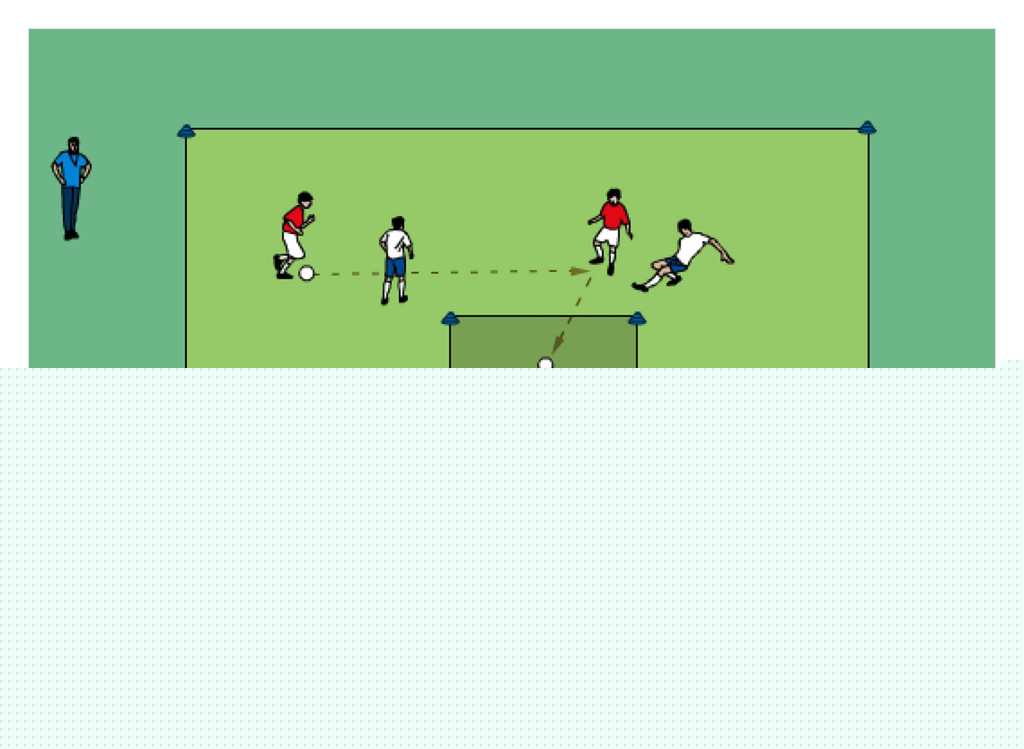 - defenders attempt to take the ball away from the attacker(red) and score on the mini goal