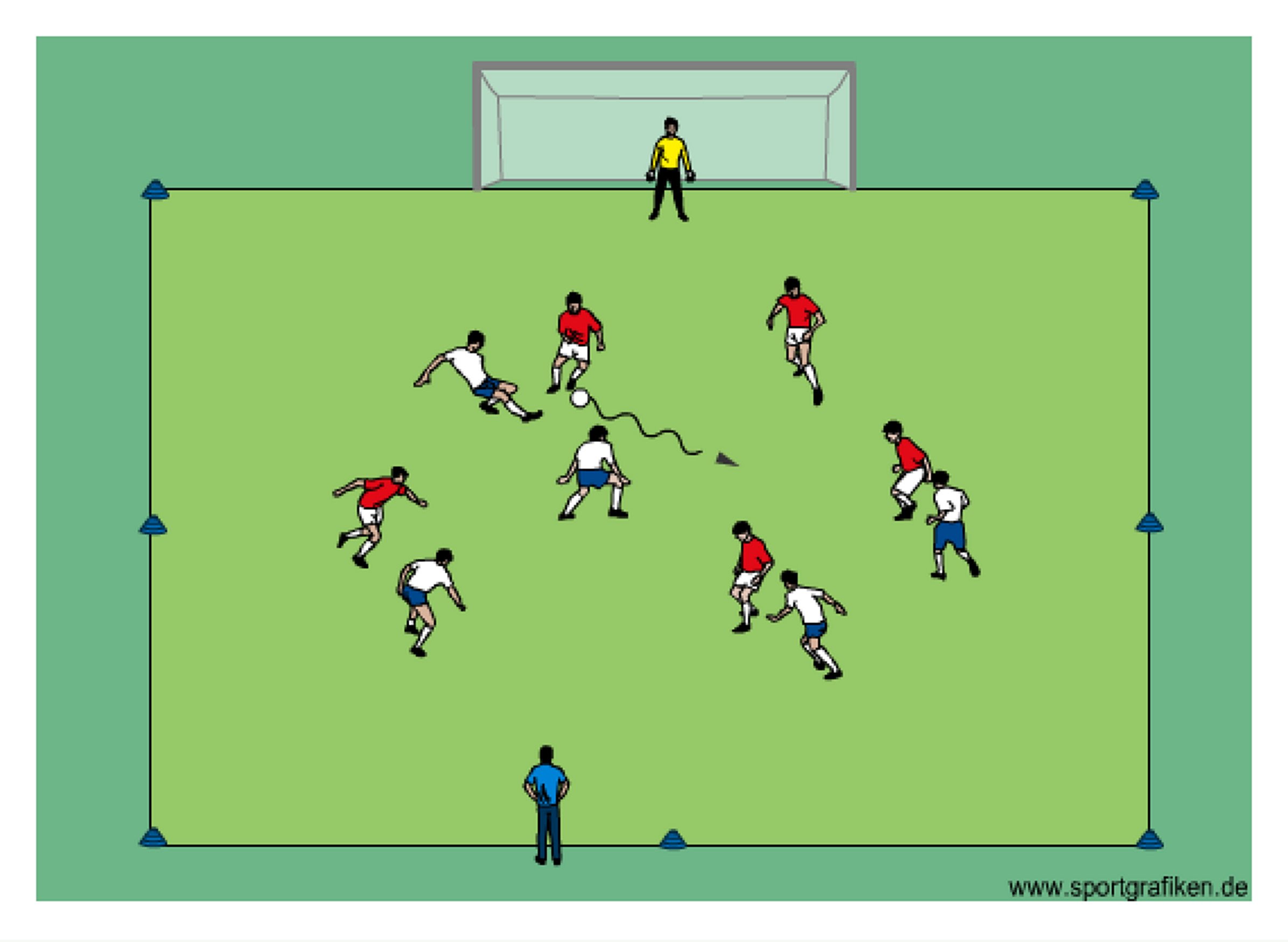 - switch roles after 4-5 minutes (team with most goals wins!)