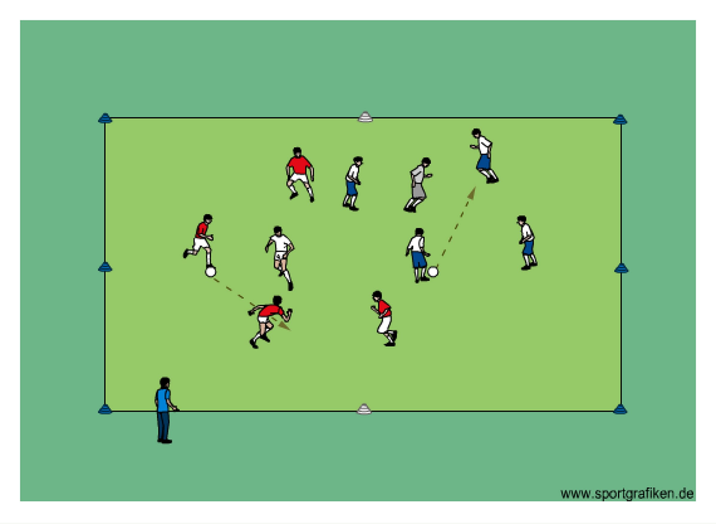 - two groups play 4v1 keep away in the same grid