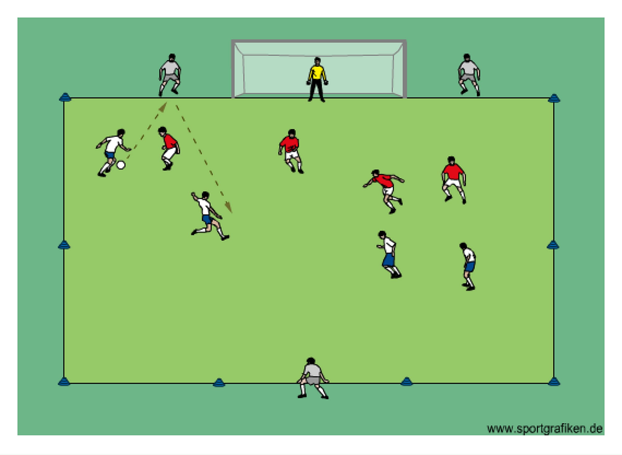 - attacking team must pass the ball to a wall player before it can score on goal with goalie