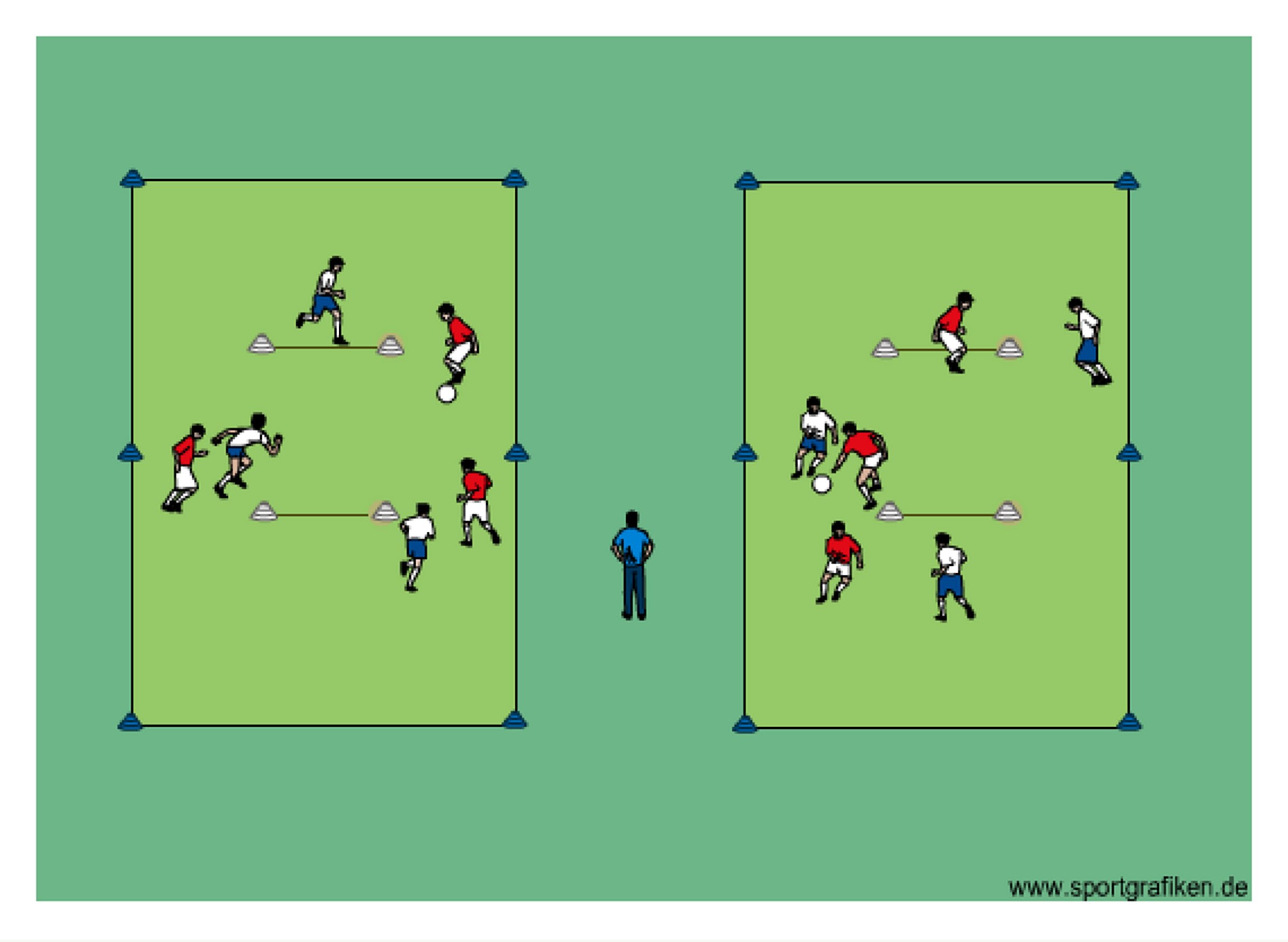 - adjust size of field and/or cone goals depending on age and ability of the group if necessary