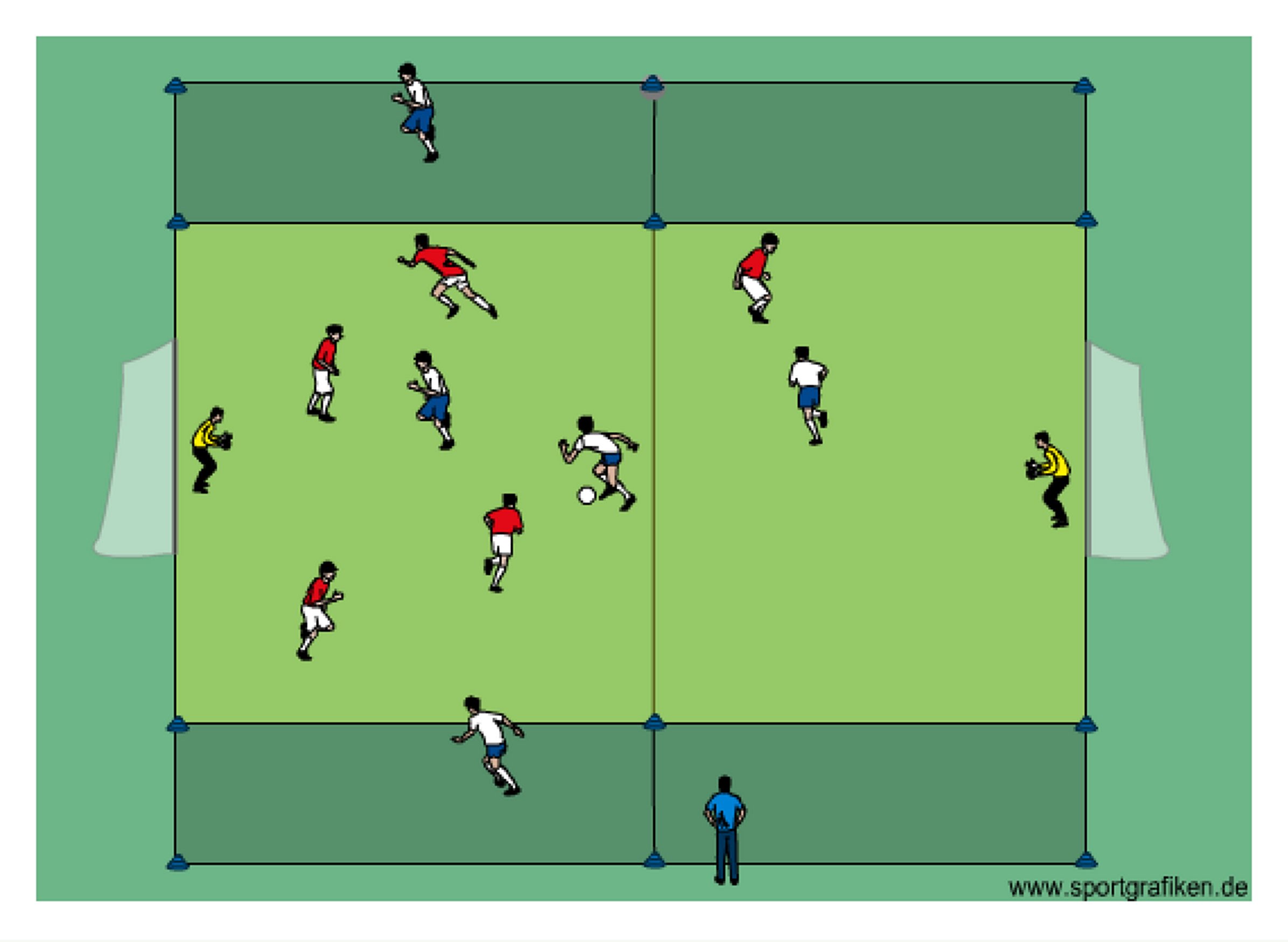 - attackers score 2 goals if defenders have not all moved into the defending half