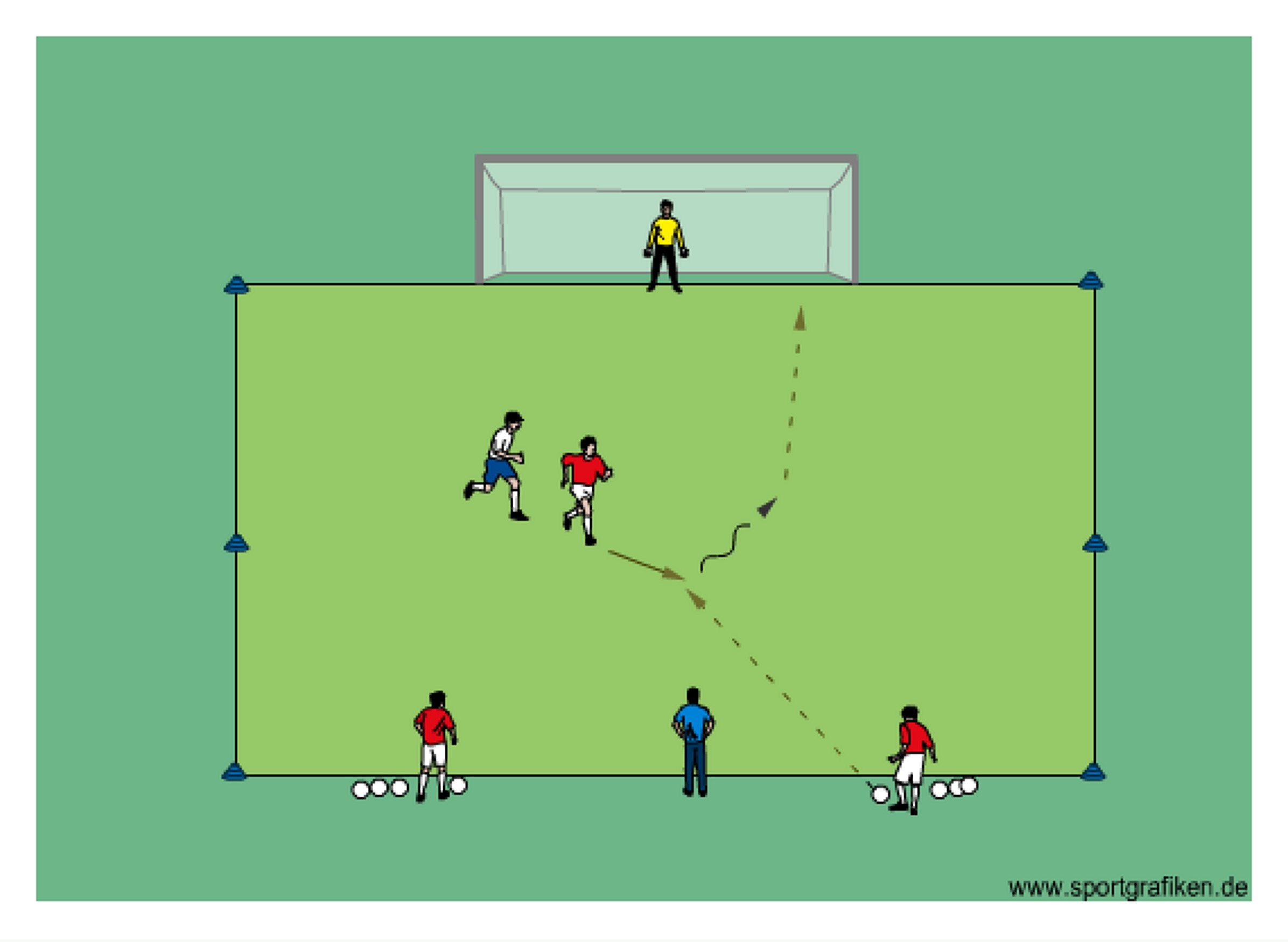 - the attacker attempts to receive a pass from one of the servers and then finishes on goal