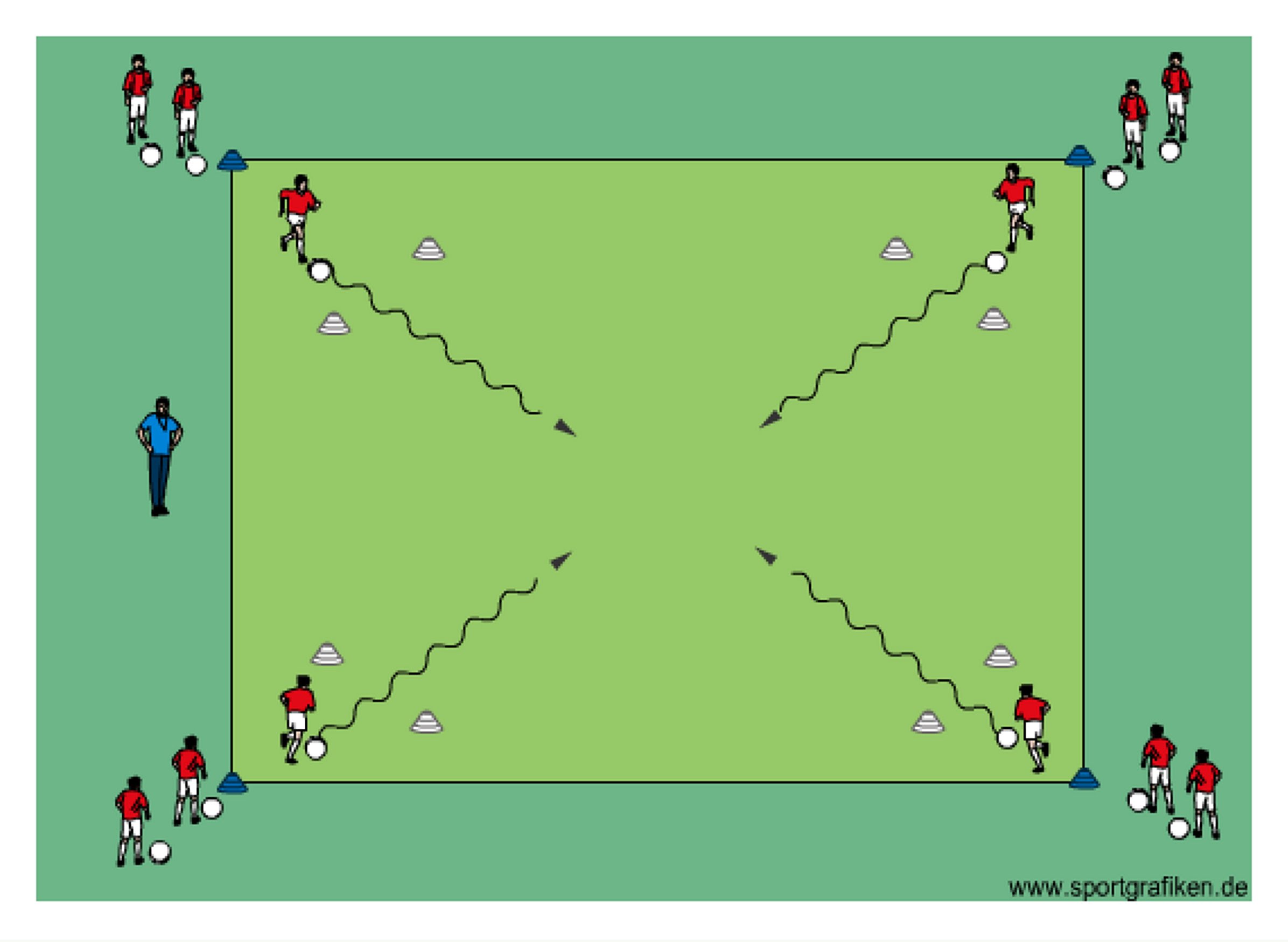 - specify how players must dribble (left or right foot, inside or outside foot etc.)