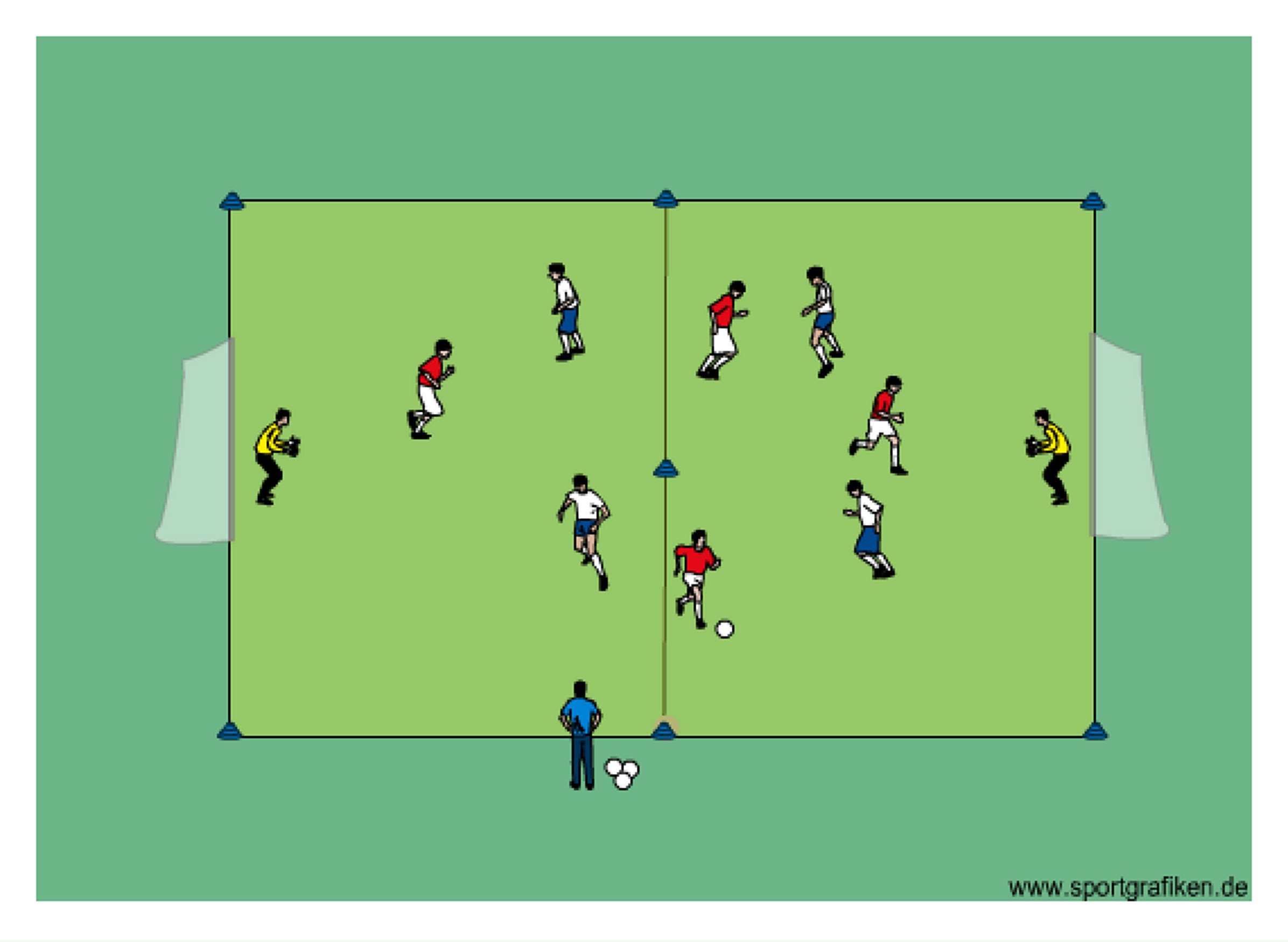 - all restarts due to out of bounds, fouls, goals, are started by the goalies