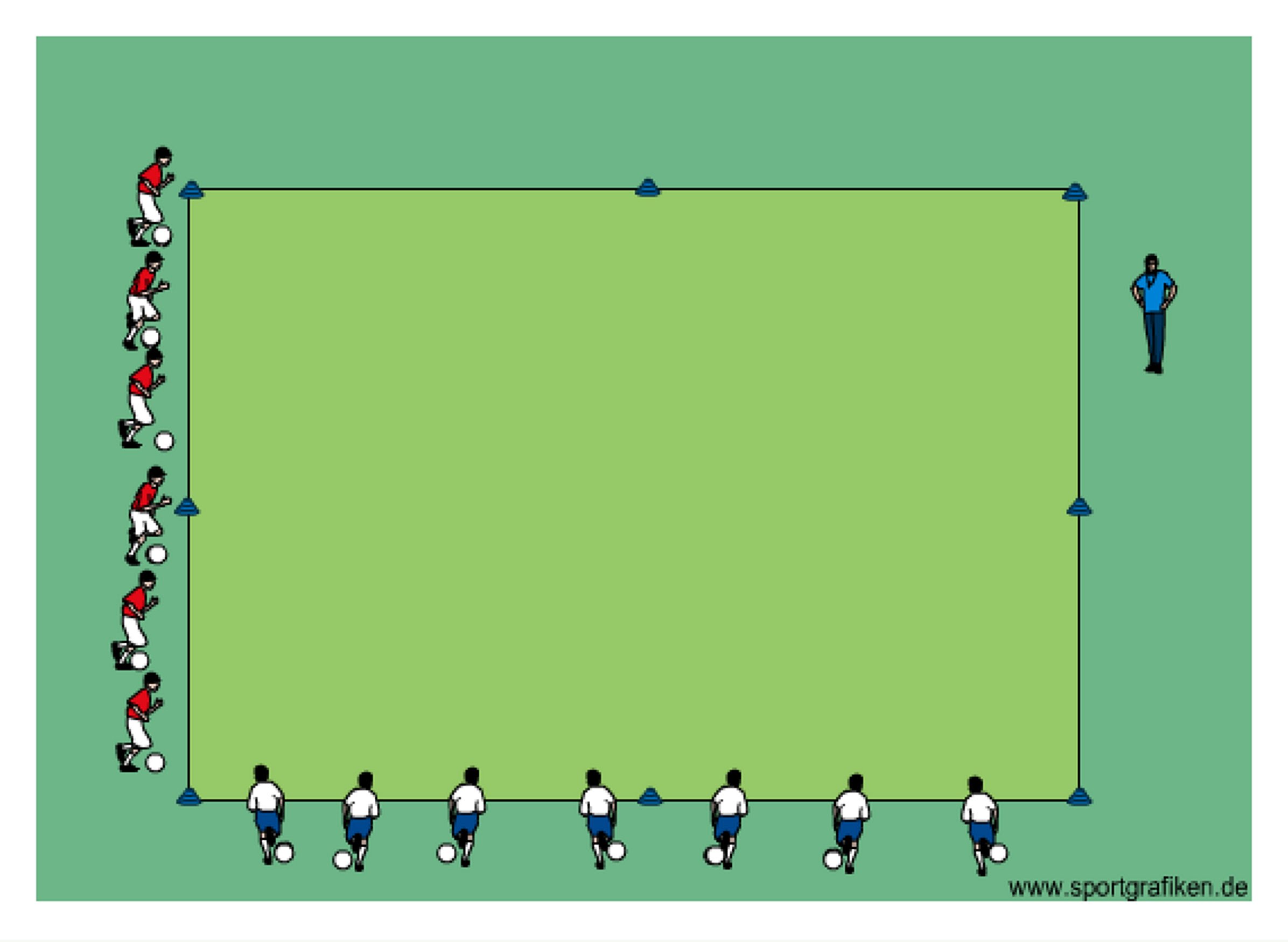 • on the coach's command players dribble to the opposite end line and back to their starting position