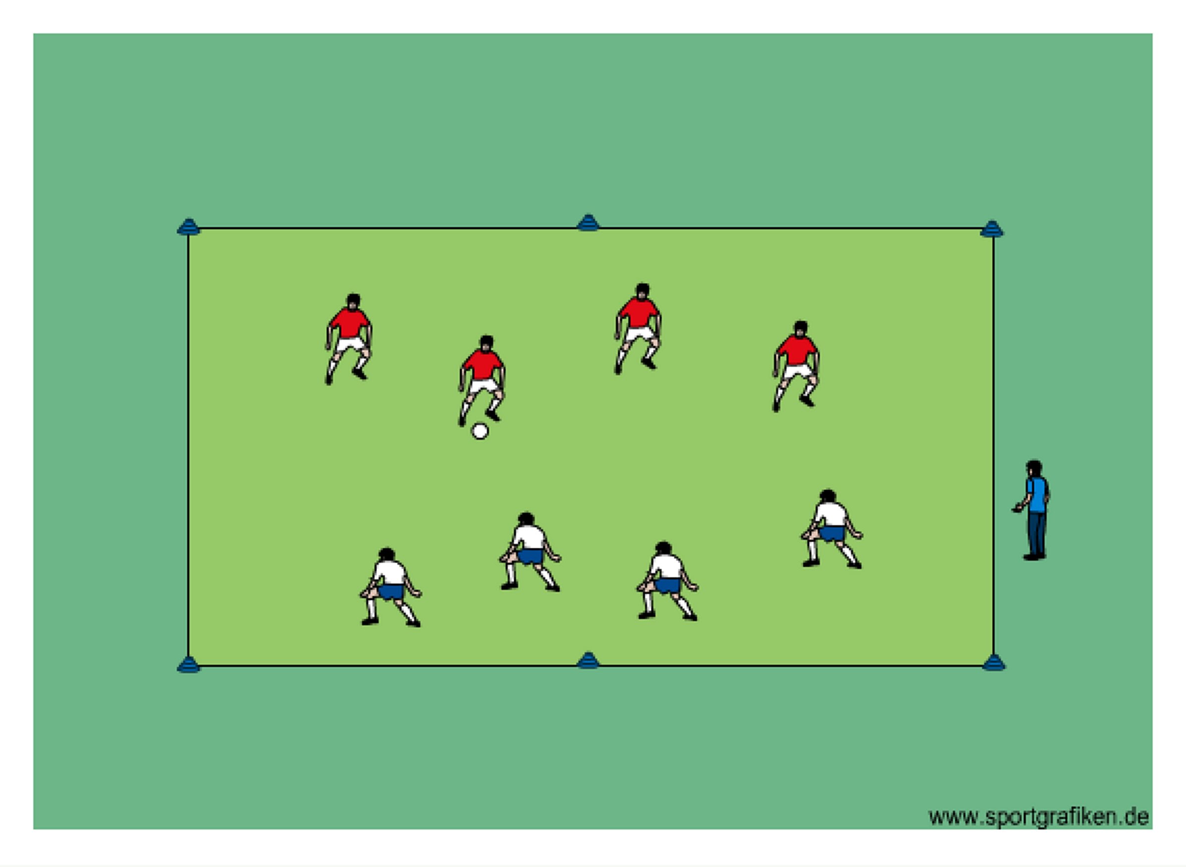 • multiple 1v1s (players can only defend a designated player and cannot tackle another attacker)