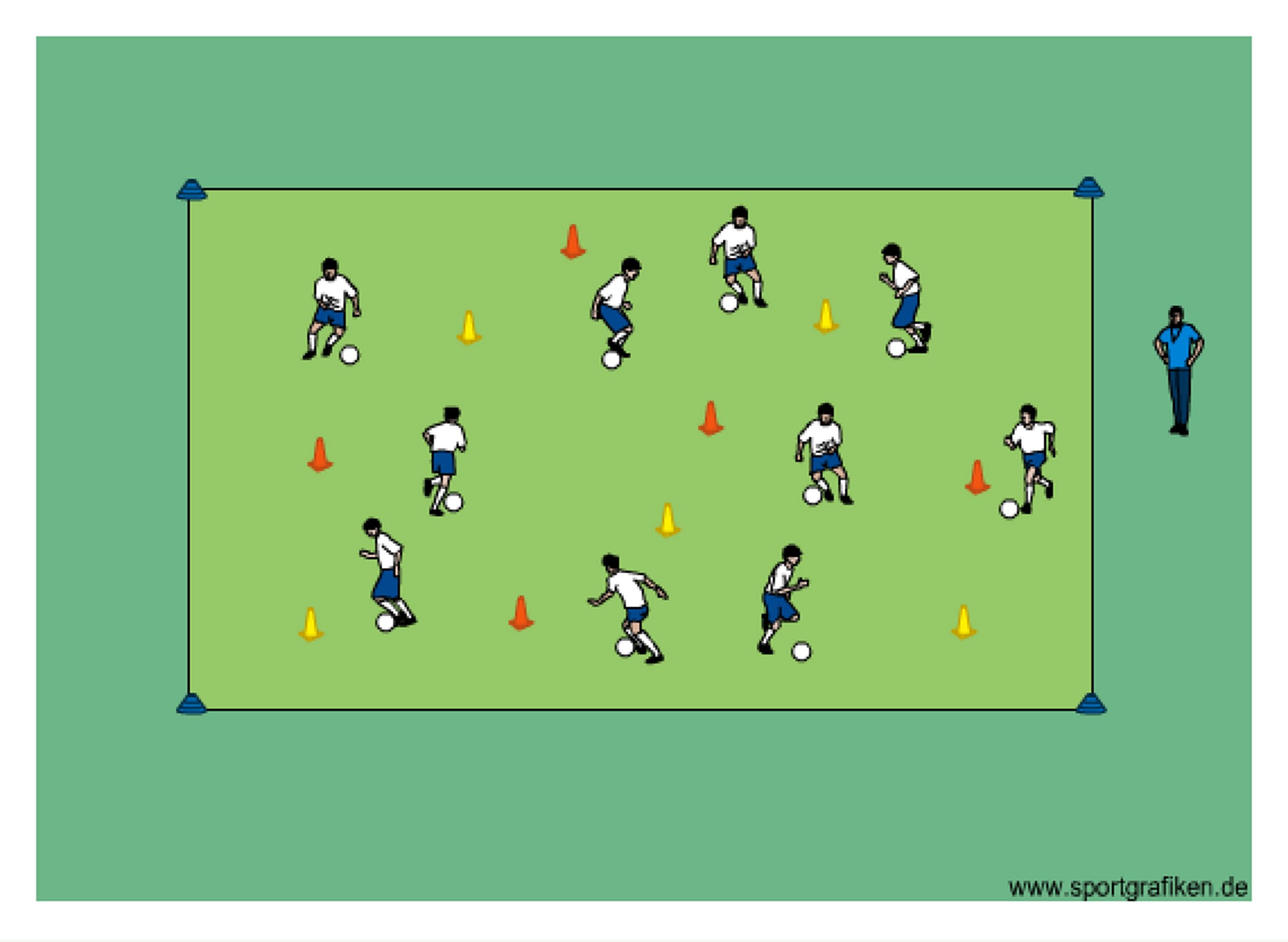 - specify how players must dribble (left or right foot, inside or outside foot etc.)
