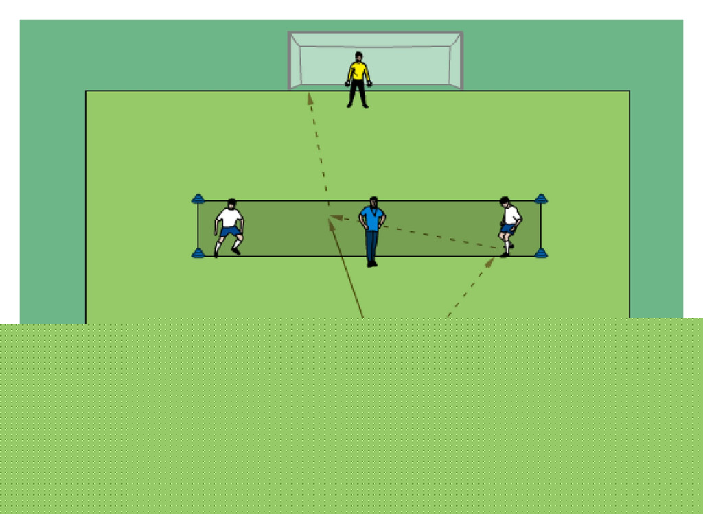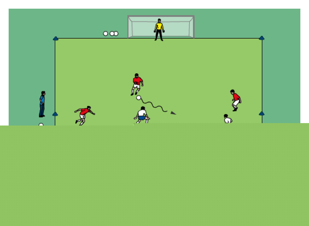 - players make a self pass towards the middle cone, catch up with it and dribble around the cone and