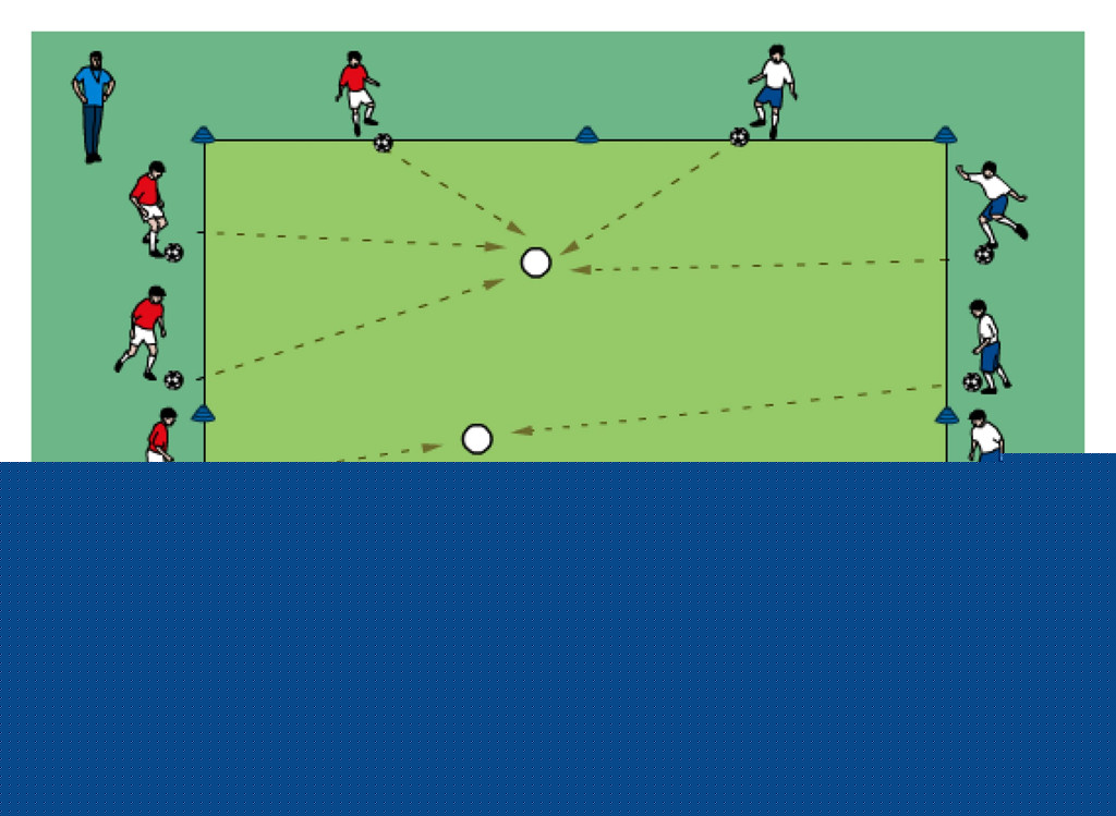 - players dribble to cone and then pass to player of other group whose first touch should take them in the direction he goes