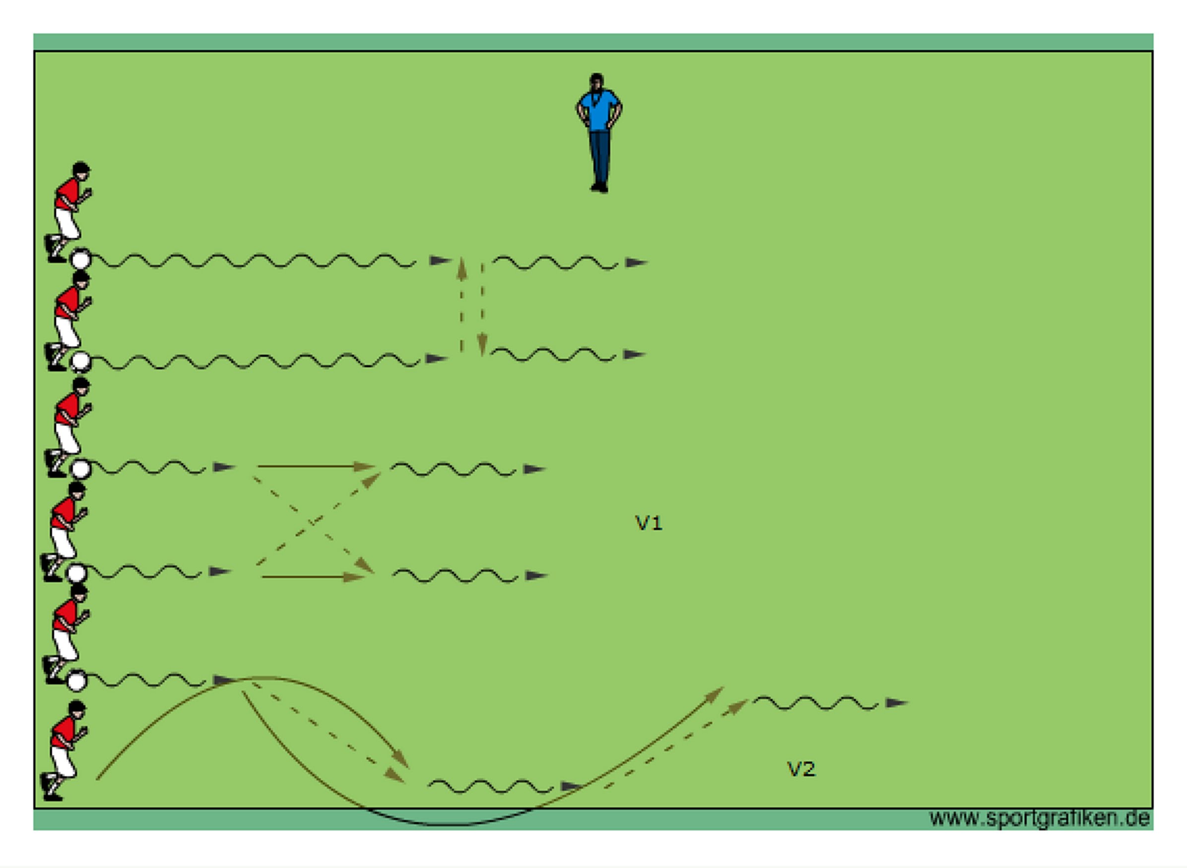 - V2: players overlap when they make a lead pass to their partner (one ball)