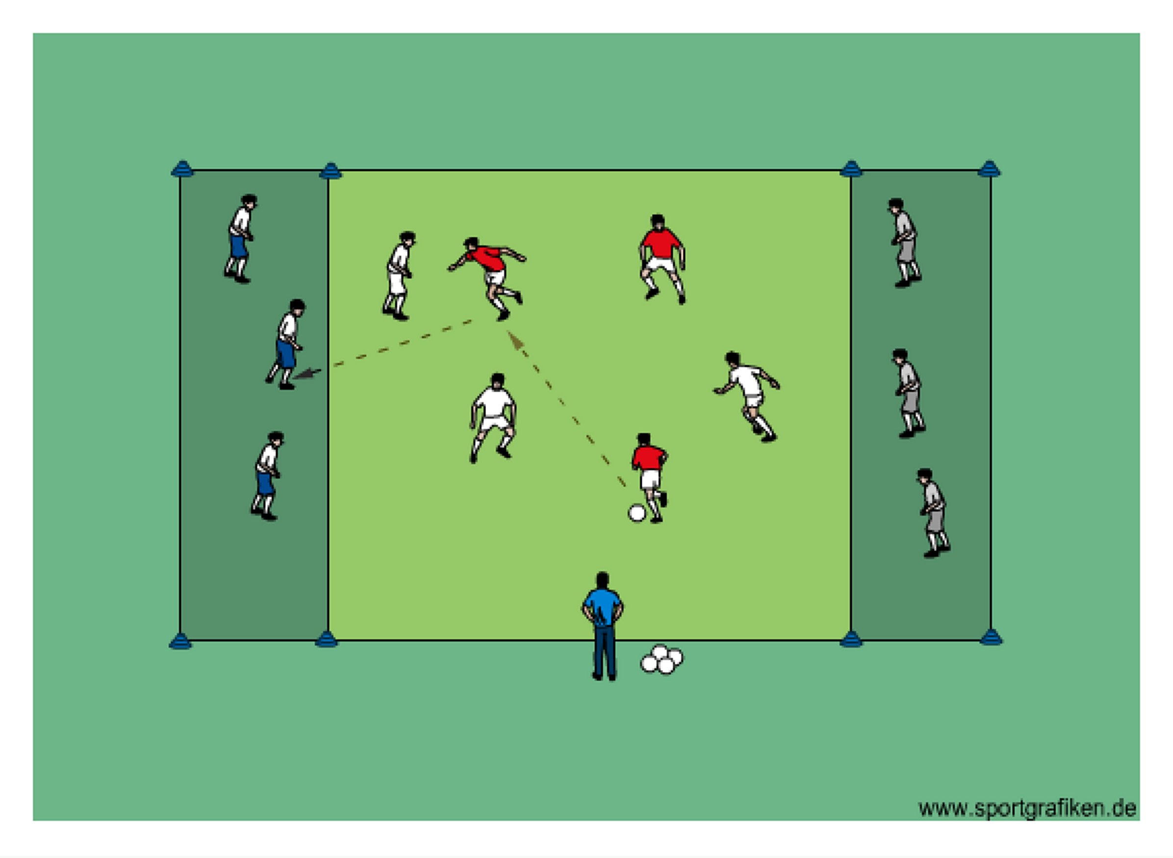 • team then defends against the team (white-blue) which received the pass